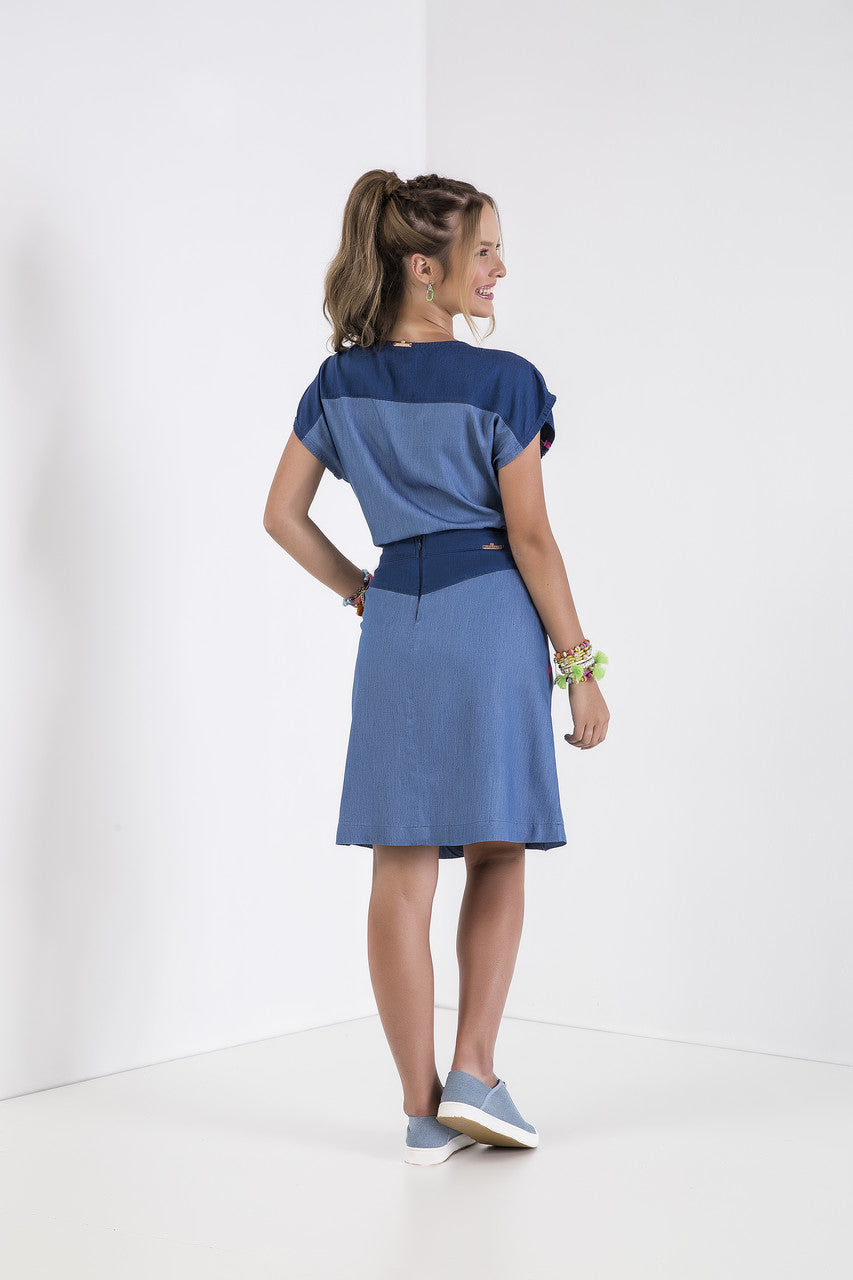 Com estilo moderno e versátil, a Saia Evase Bicolor Jeans da marca Império Z possui caimento impecável e modelagem evase. Confeccionada em tecido jeans com lavanderia amaciada, essa peça conta com bolsos frontais funcionais, fechamento traseiro em zíper e pespontos em cor de linha delave. Além disso, a saia apresenta bloco de cor confeccionado em dois tipos de tecidos, sendo parte da linha sustentável da marca que utiliza técnicas de produção para minimizar o uso de água durante o processo de criação.