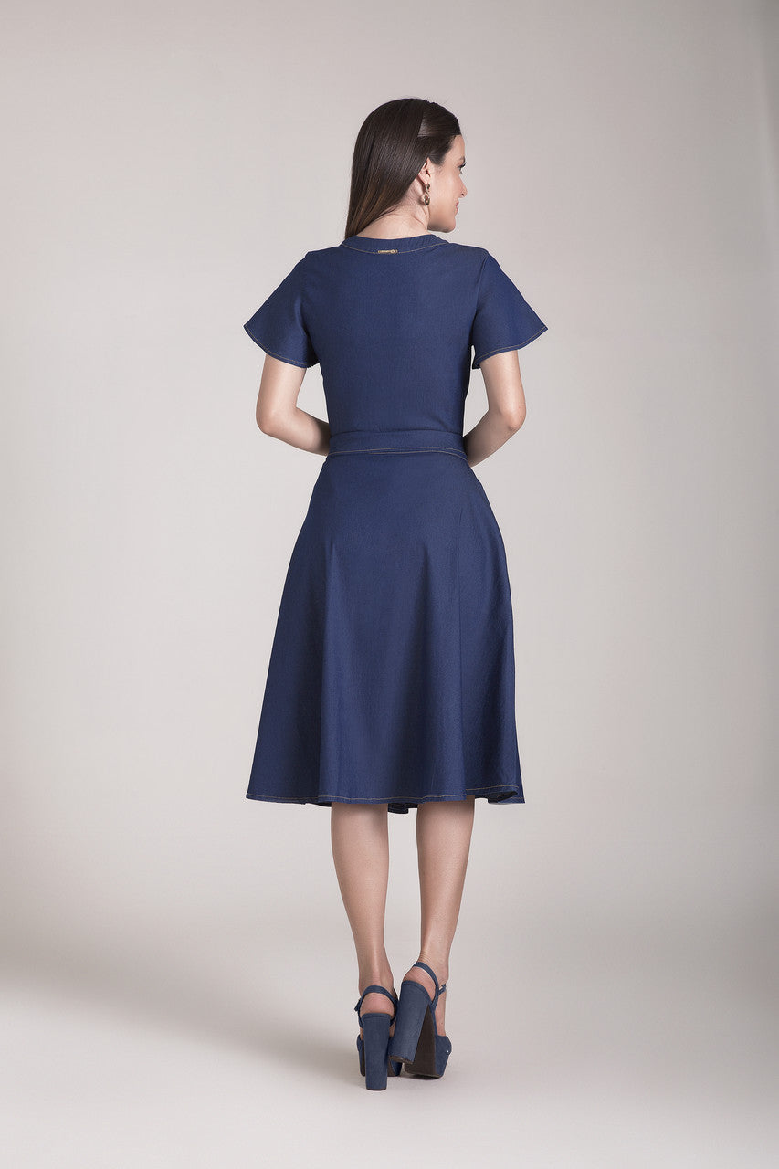 Blusa jeans Laura Rosa, confeccionada em jeans com lavanderia amaciada. Possui detalhe de botões funcionais encapados no decote e pespontos em cor de linha caqui. A peça possui um estilo versátil e moderno, com caimento confortável e modelagem que valoriza o corpo. Ideal para compor looks casuais ou mais despojados.