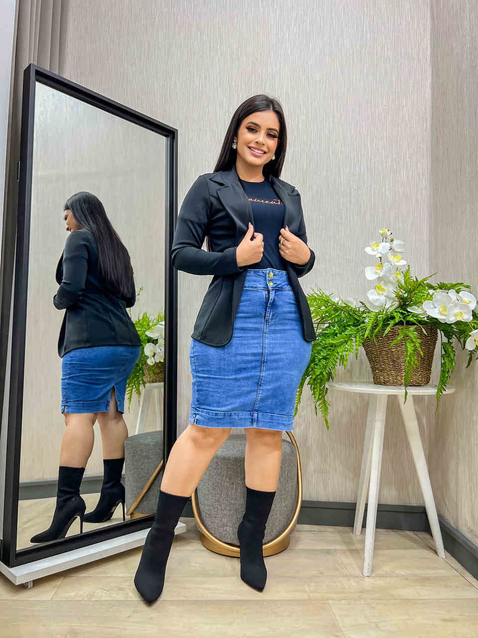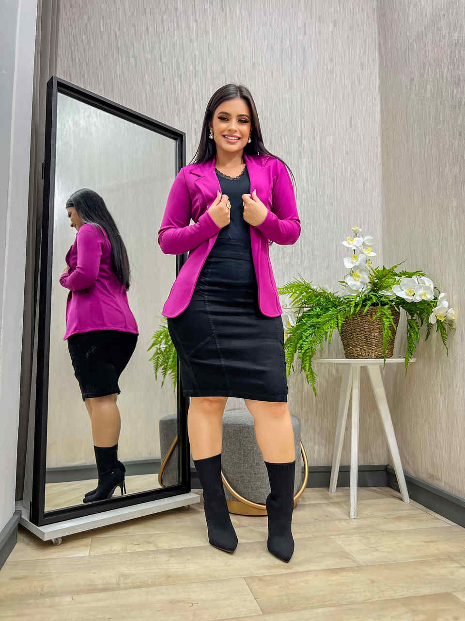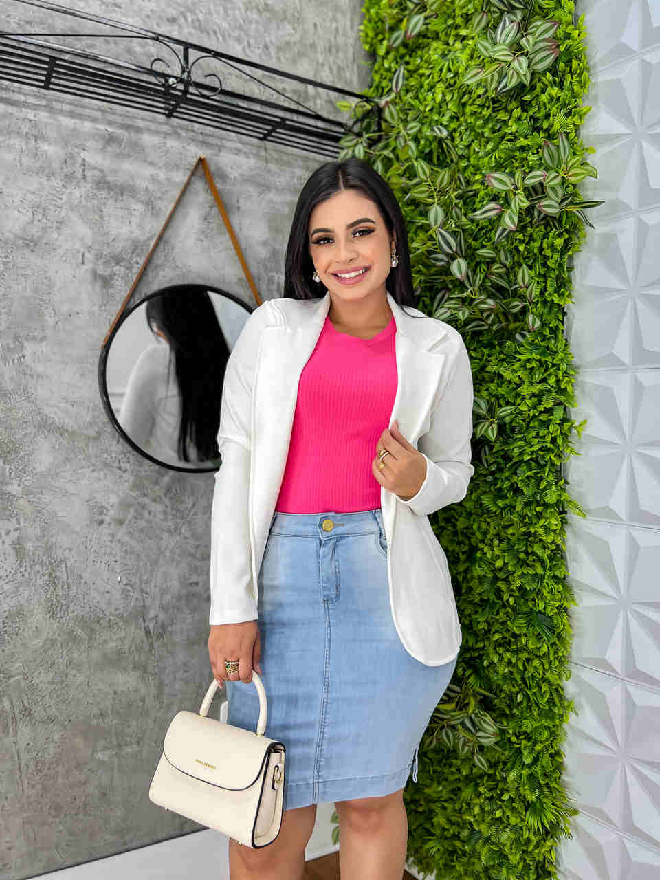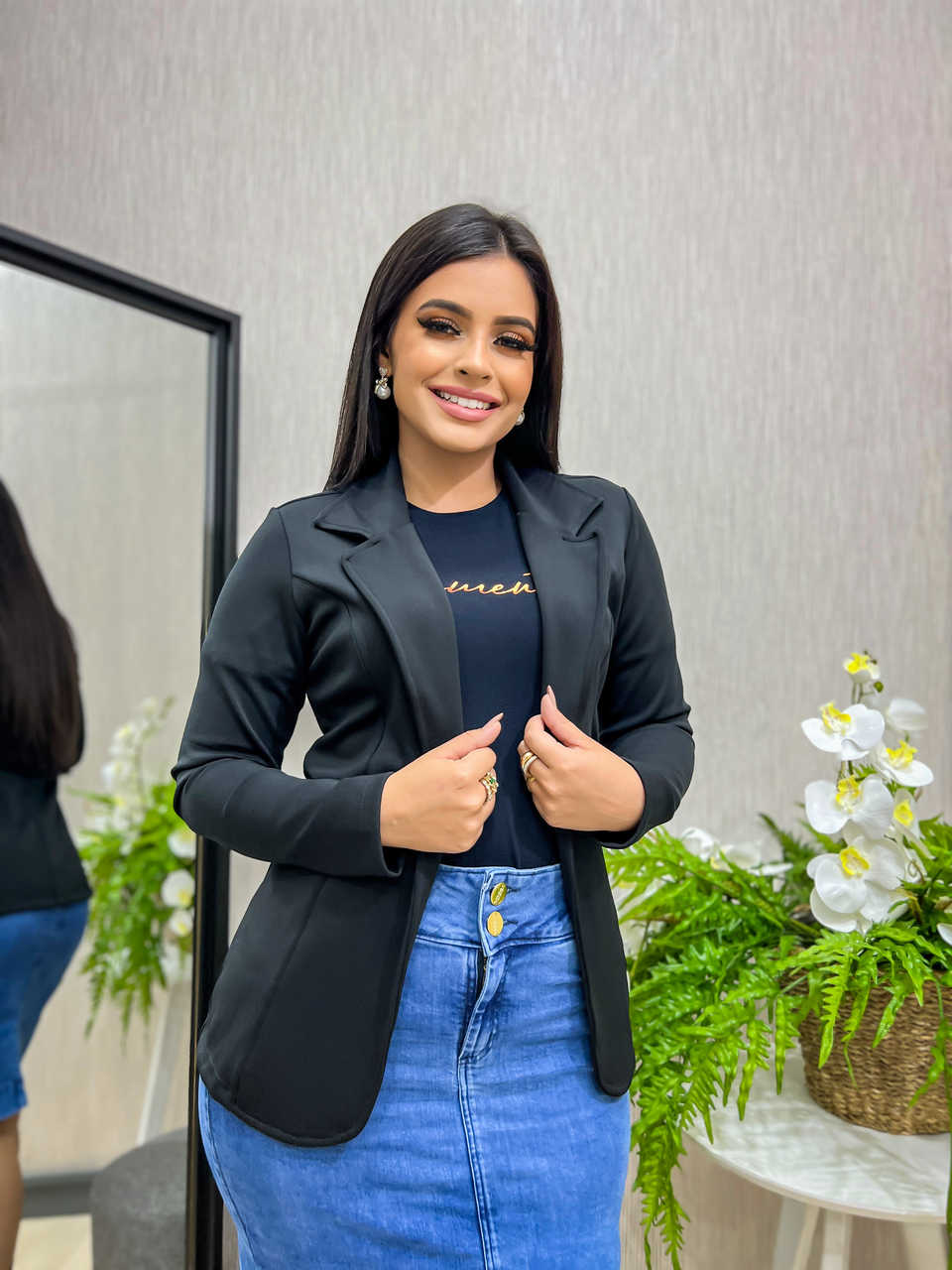 Combine o blazer Naty Neoprene com uma calça de alfaiataria para um look sofisticado, ou com uma calça jeans para um visual mais casual e despojado.