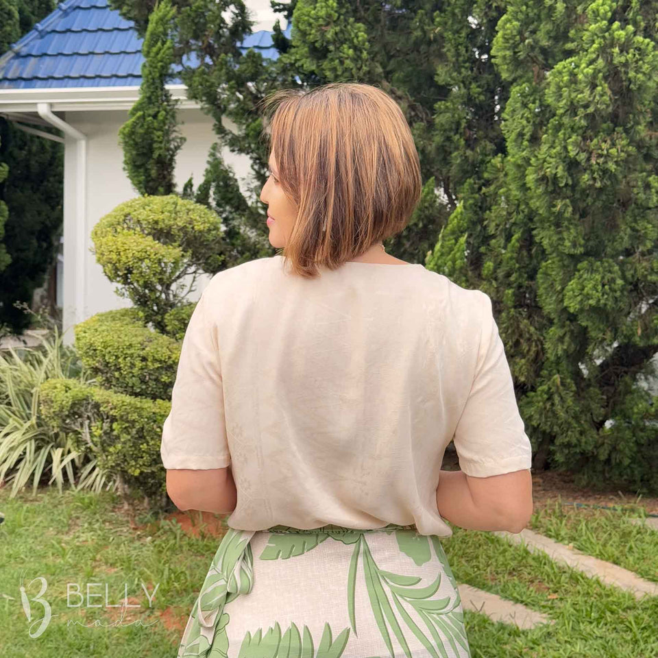 Combine a Blusa Angelina Meia Manga com uma saia midi e sapato de salto para um look sofisticado, ou com calça jeans e tênis para um visual mais casual.