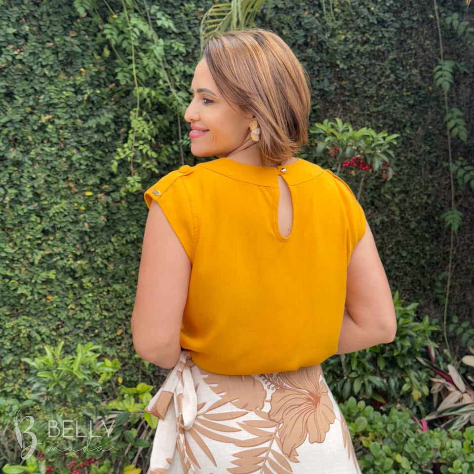 Blusa croped manga muscle da marca Belly Moda, confeccionada em viscose de alta qualidade. Possui modelagem mais solta e comprimento na altura da cintura, proporcionando segurança e conforto durante os movimentos. Destaque para o detalhe em martingale acima dos ombros com botão encapado decorativo. Uma peça perfeita para compor looks lindíssimos.