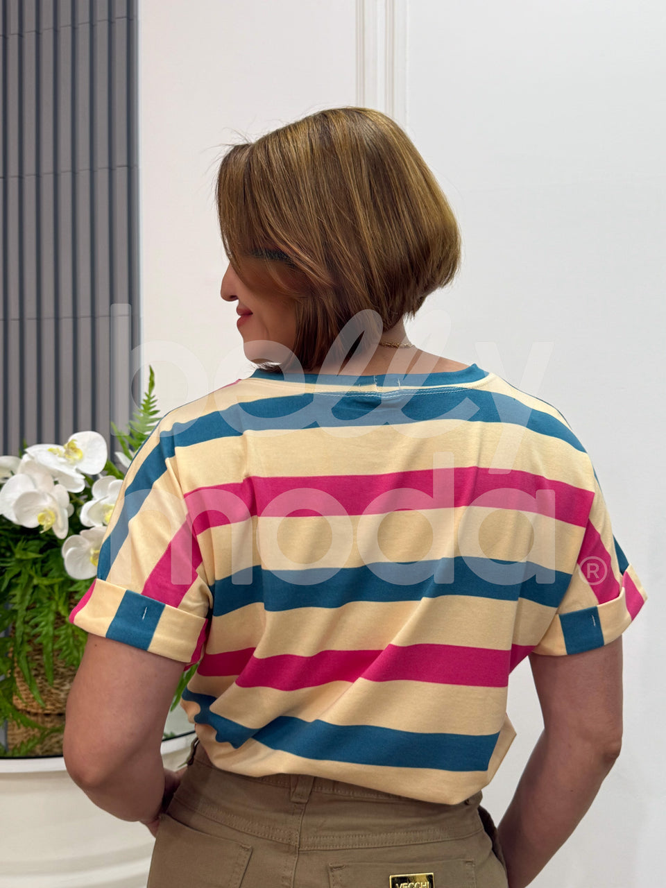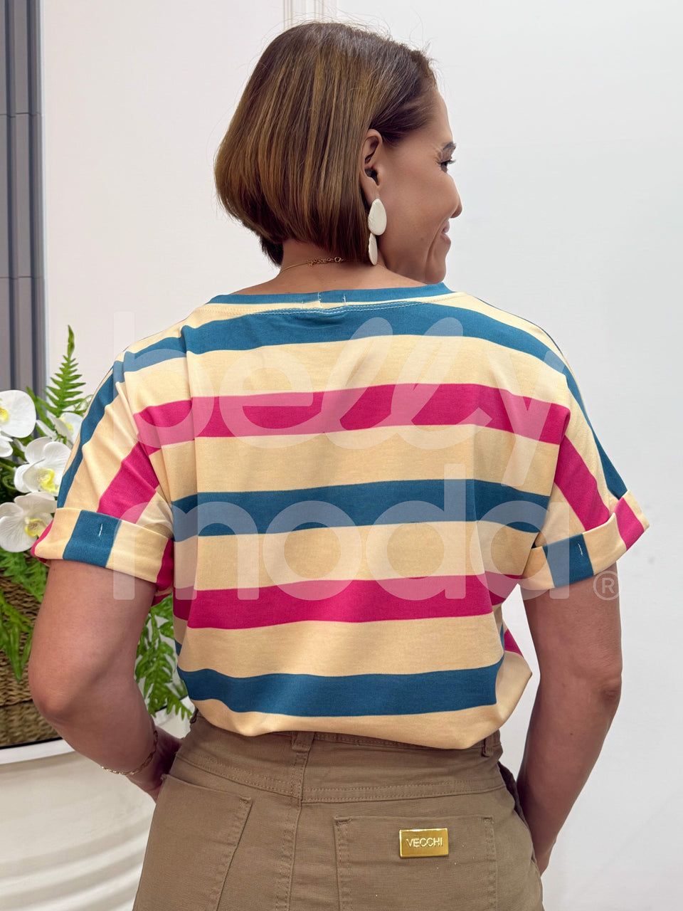 Blusa Heloísa da Belly Moda, com modelagem mais soltinha e estilo casual. Feita em malha viscolycra com toque de algodão, possui manga raglã com finalização dobrada, gola canoa e estampas lindas.