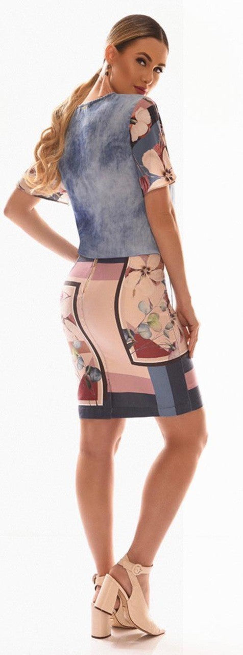 Blusa jeans com manga estampada e detalhe de amarração. Confeccionada em jeans e seda de toque macio e suave, esta peça possui um detalhe em entremeio abaixo do ombro e detalhe de amarração frontal, garantindo um estilo único e versátil.