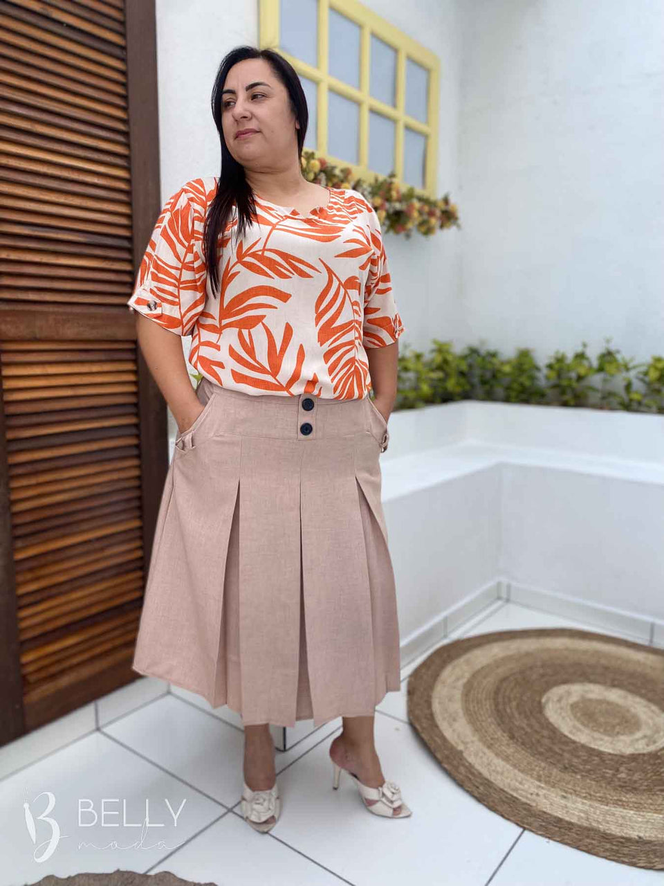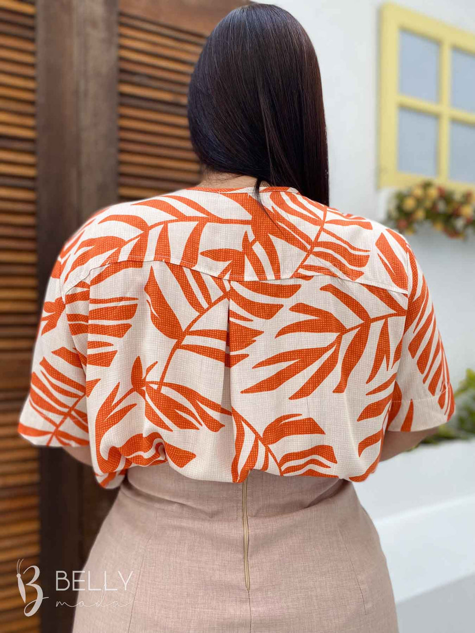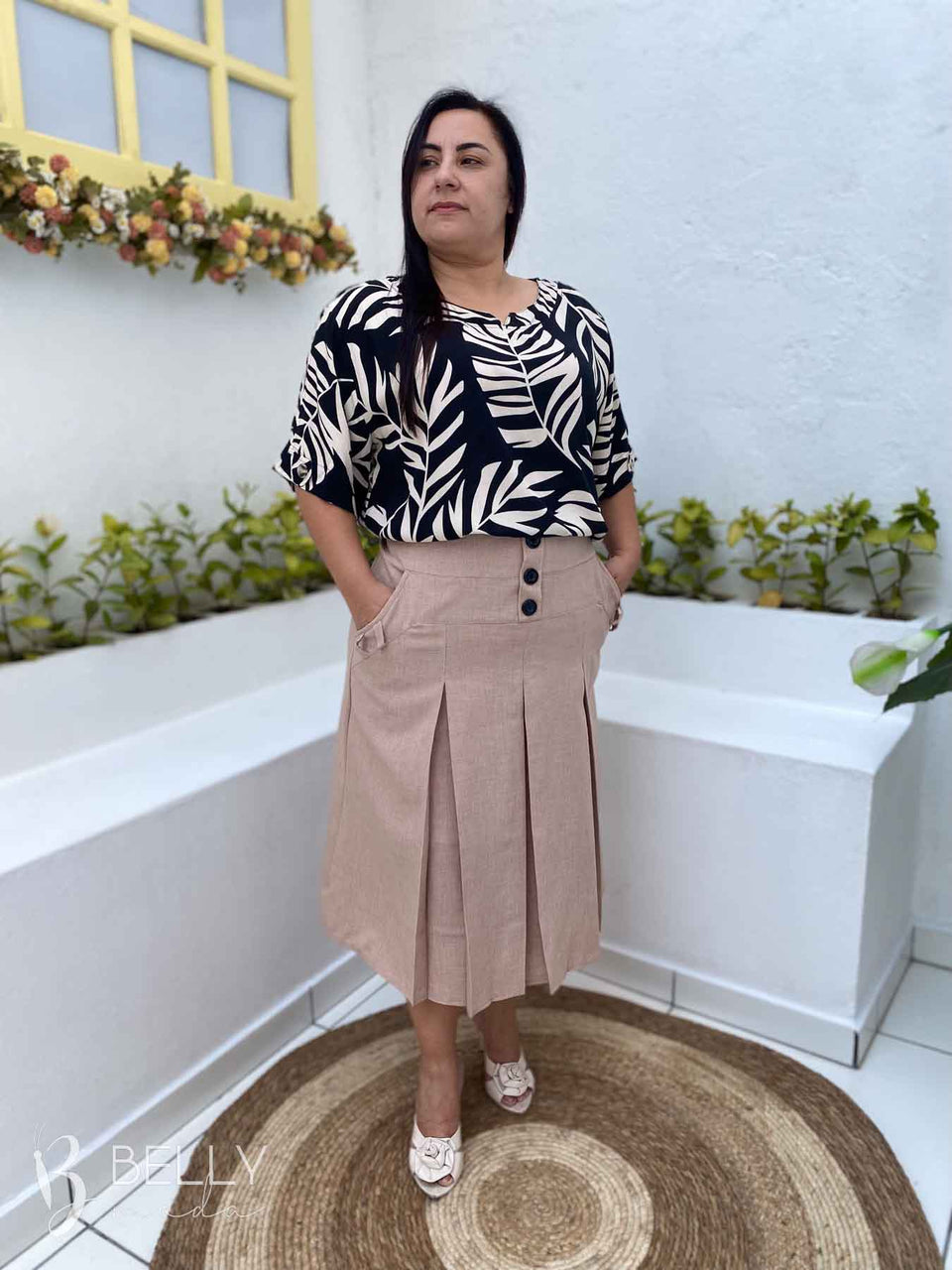 Blusa de manga curta com detalhe martingale da marca Belly Moda, confeccionada em viscolinho de toque macio e suave. Possui manga 3/4 com detalhe em martingale, gola canoa com um detalhe em V. Uma peça super confortável e versátil, perfeita para diversas combinações.