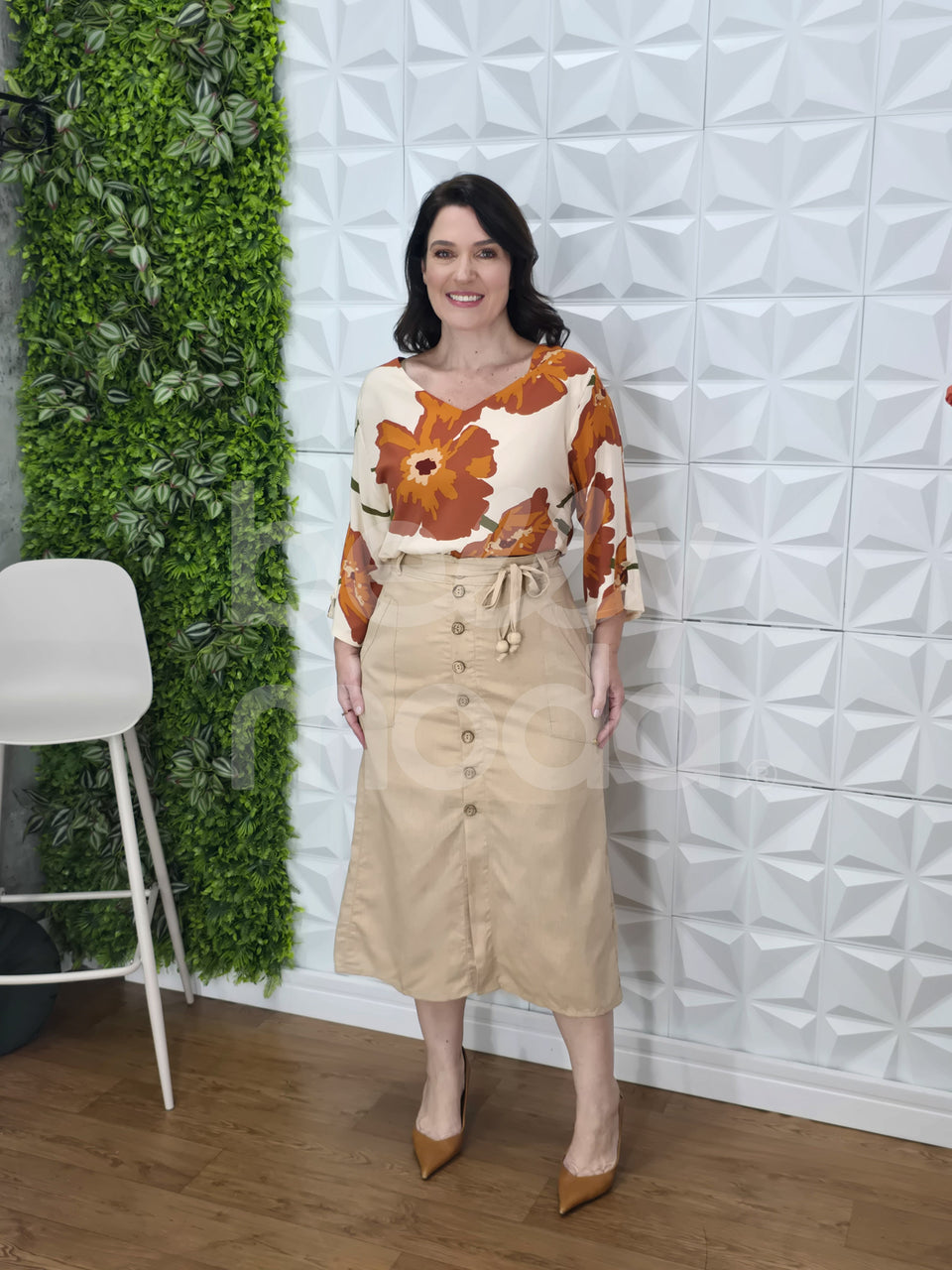 A Blusa Violeta é confeccionada em viscose leve e fresca, ideal para os dias mais quentes. Com uma estampa floral charmosa, decote em V e meia manga ampla, garante conforto e fluidez ao vestir. Uma peça versátil que une feminilidade e elegância em cada detalhe.