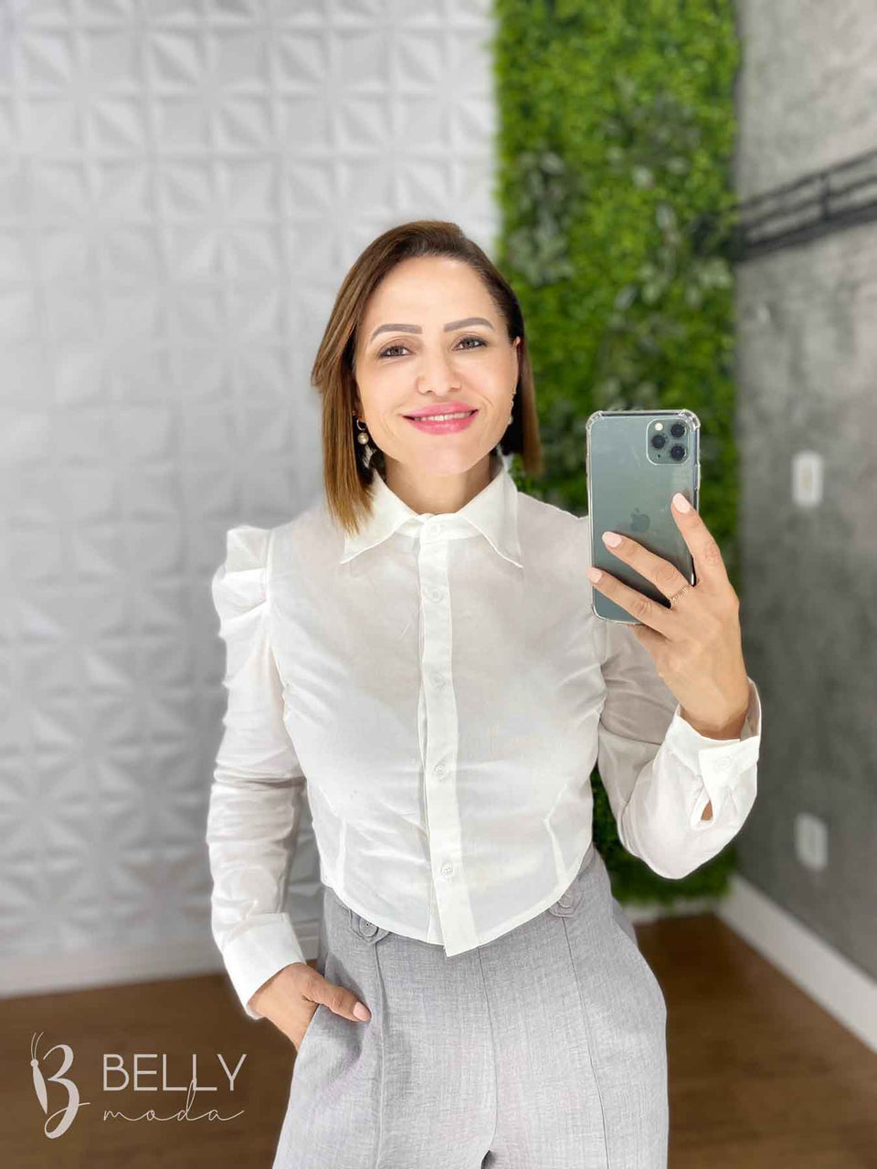 Camisa Atena Cropped Manga Longa da Belly Moda é uma peça elegante e versátil. Com toque macio e suave, possui manga longa com punho, corte alfaiataria, fechamento frontal em botões e gola de camisa. Ideal para compor looks estilosos e modernos.