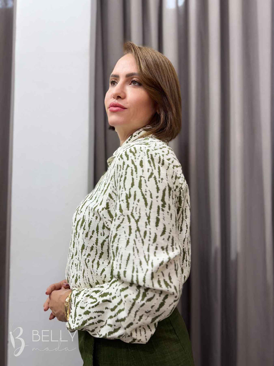 Combine a Camisa Esmeralda da Belly Moda com uma calça jeans e sapatilhas para um look casual e confortável.