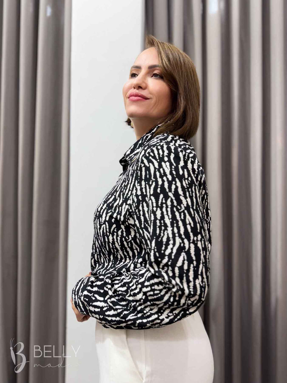 Camisa Esmeralda da Belly Moda é confeccionada em viscose com poliamida, proporcionando um tecido respirável e confortável. Possui toque macio e suave, manga longa com punho, gola de colarinho e fechamento em botões frontal. Seu comprimento alongado permite ser usado também como vest legging.