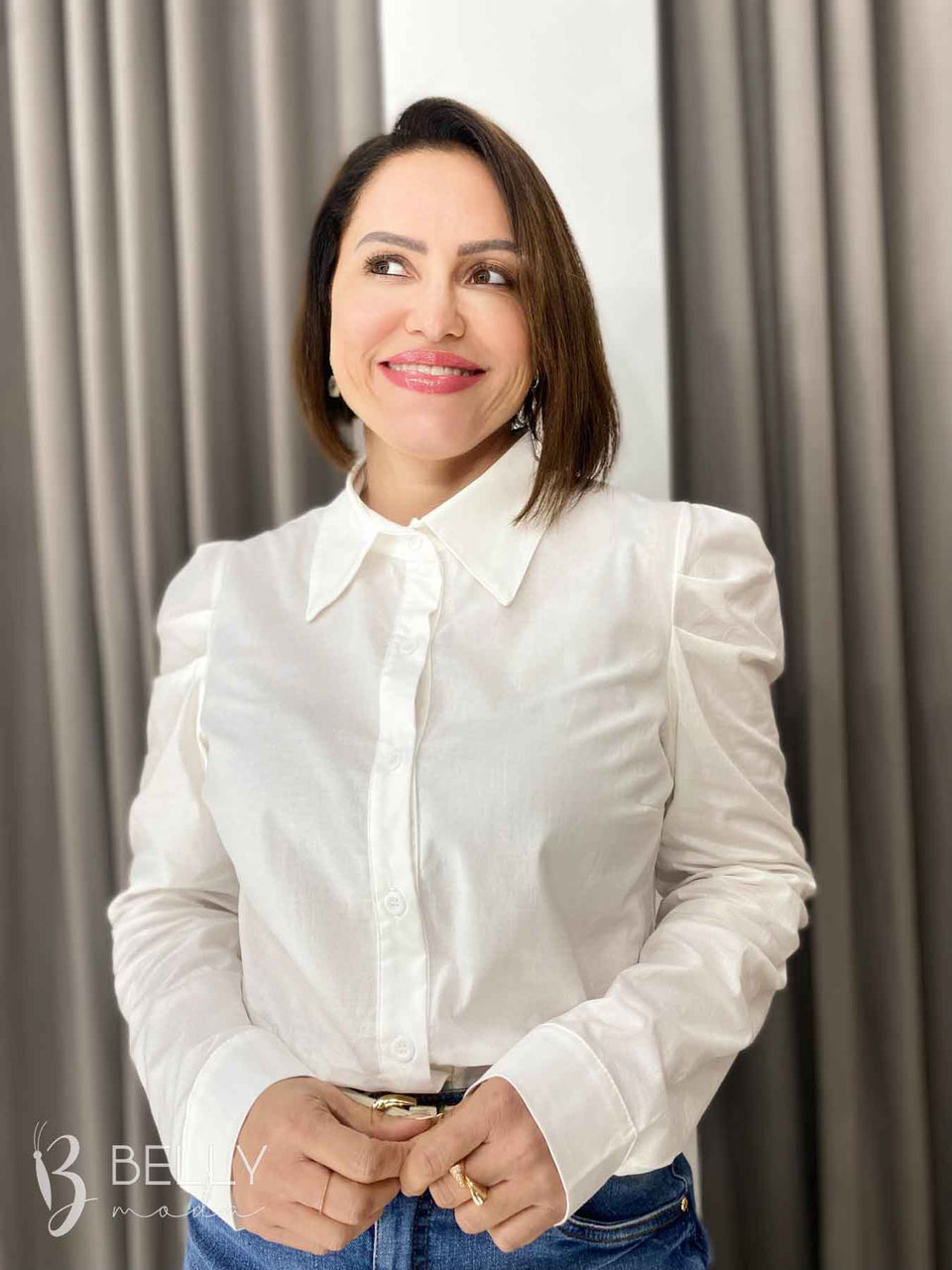 Destaque seu estilo com a Camisa Samia Manga Longa da Belly Moda. Feita em tecido plano com corte alfaiataria, essa peça é super confortável e fresca para a estação. Com mangas longas e fechamento frontal em botões, essa camisa é perfeita para diversas ocasiões, garantindo um visual elegante e moderno.