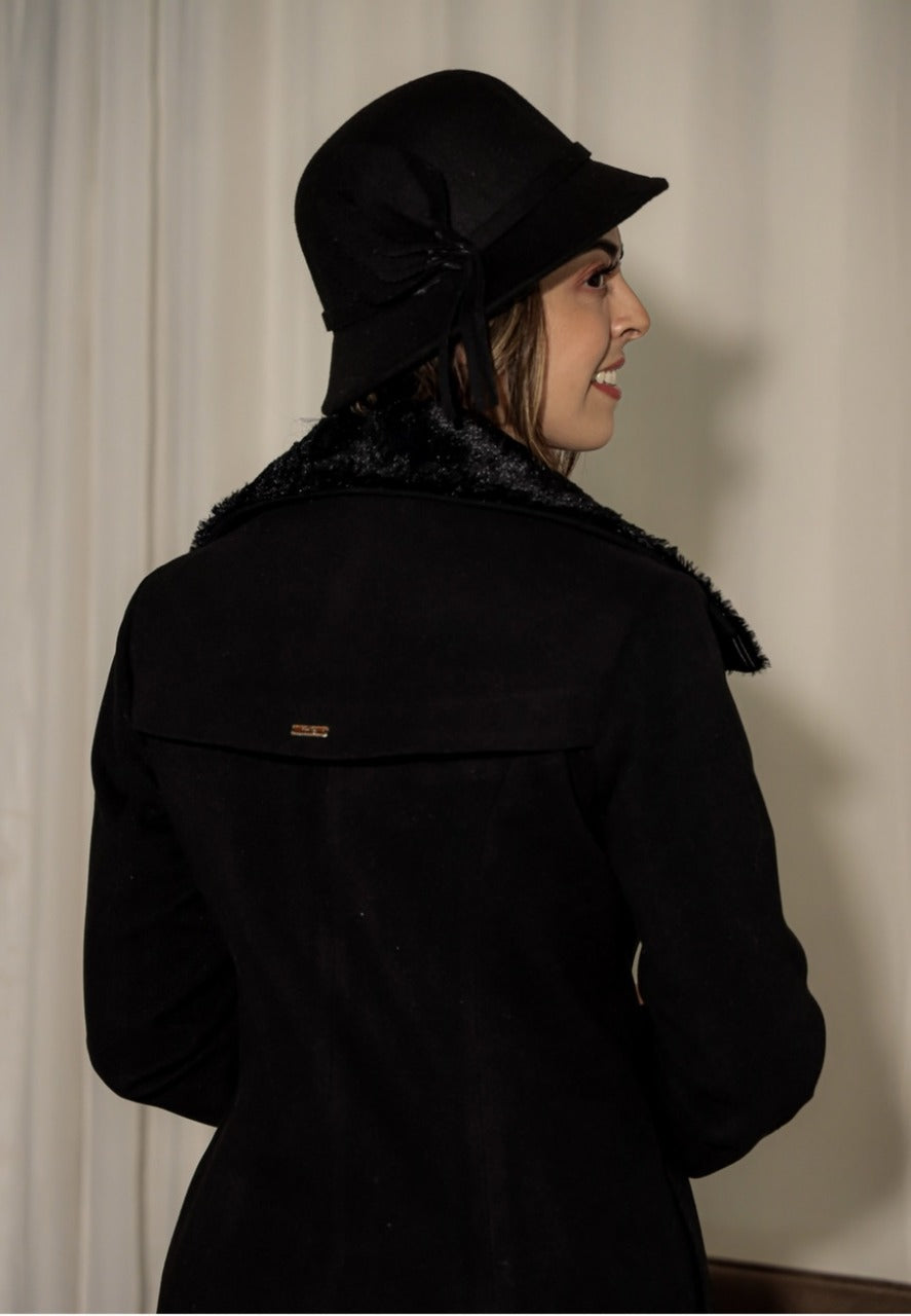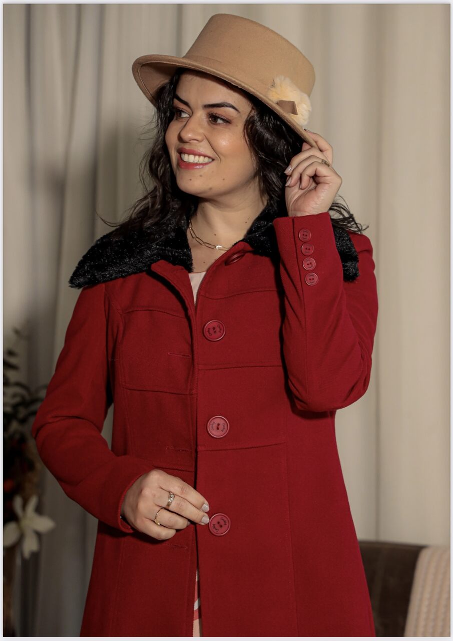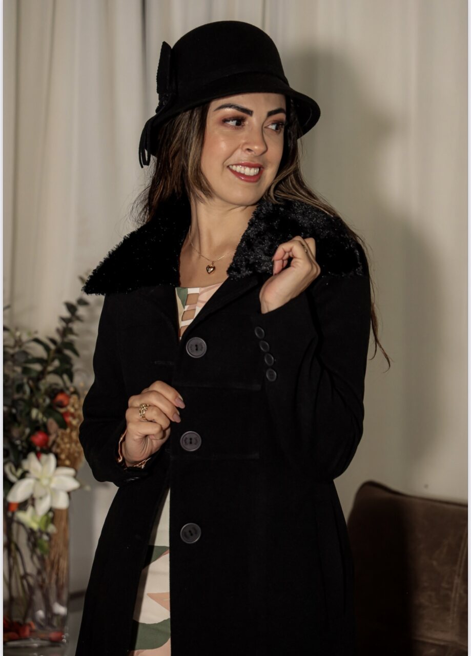 Casaco sobretudo elegante e sofisticado da marca CECHIQ, confeccionado em Lã Lainage Twill. Possui modelagem reta acinturada com recortes frontais em palas, conferindo elegância à peça. Com corte em alfaiataria, manga longa com detalhe em botões. A gola de pelo é removível, fechamento em botões frontal funcional e comprimento na altura do joelho. Totalmente forrado em cetim, conta com bolsos laterais funcionais. Este casaco é a definição de elegância em um look.