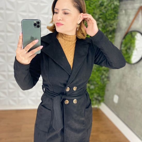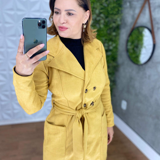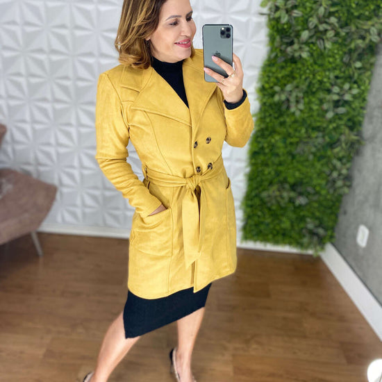 O Casaco Sobretudo Léia da marca Laguine é confeccionado em sued, apresentando uma modelagem mais reta com recortes inteligentes e faixa para marcar a cintura. Transpassado e com fechamento em botões, possui bolsos frontais e comprimento abaixo do quadril. Uma peça indispensável para esta estação, oferecendo elegância e estilo em um único item.