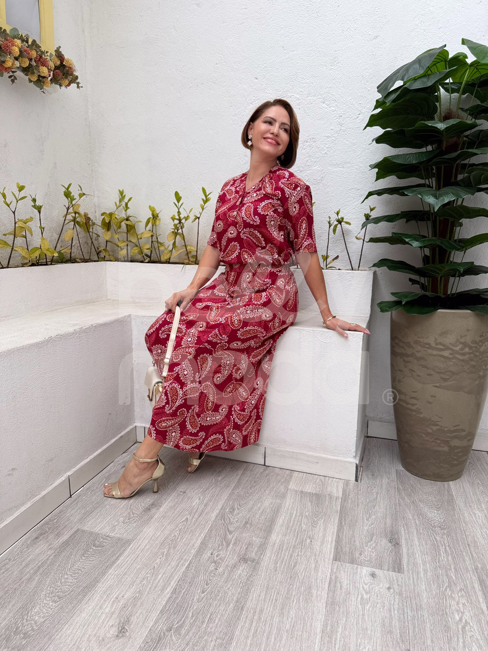 Combine o Conjunto Midi Cleuza com sandálias de salto para um visual sofisticado ou rasteirinhas para um look mais descontraído e moderno.