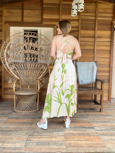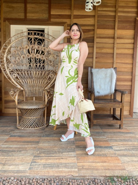 O Conjunto Sofy Cropped da Belly Moda é confeccionado em viscose premium, garantindo um toque macio e suave. Com modelagem evasê na saia com transpasse, o conjunto possui cropped frente única com ajuste de amarração na parte de trás e bojo. O comprimento é midi, e a peça conta com uma estampa super moderna. O top é forrado na região do busto, e a saia é forrada até a altura do quadril, garantindo conforto e estilo em um único conjunto.