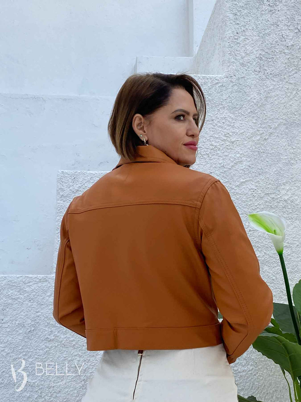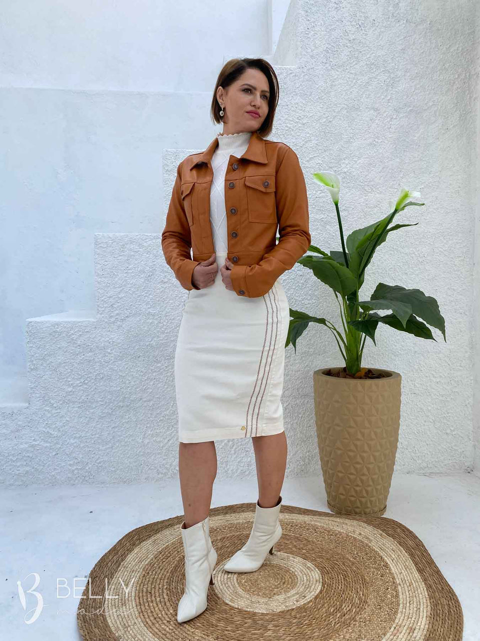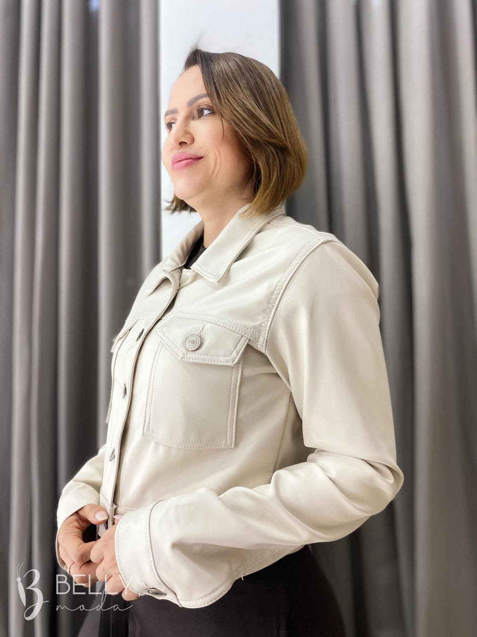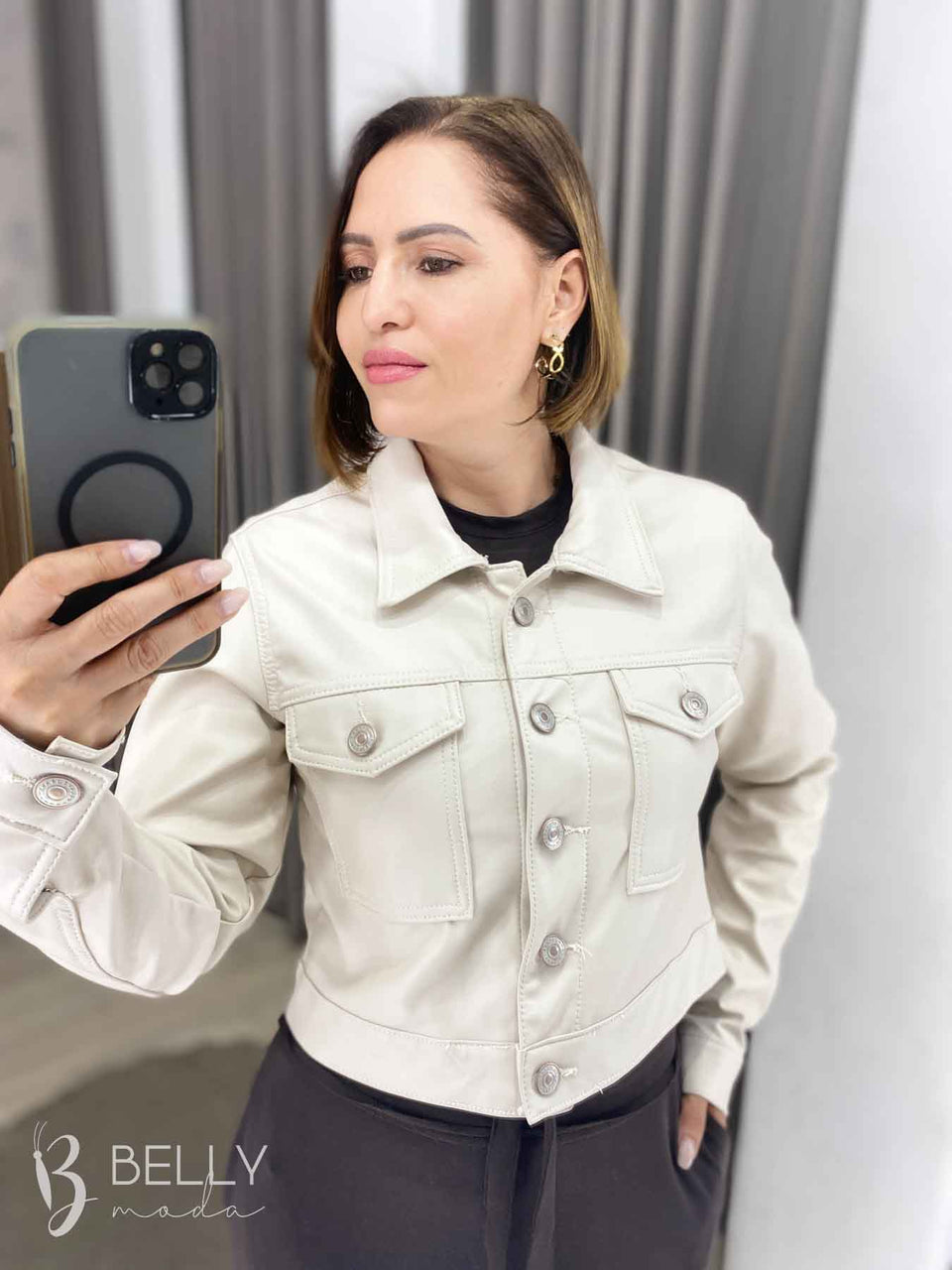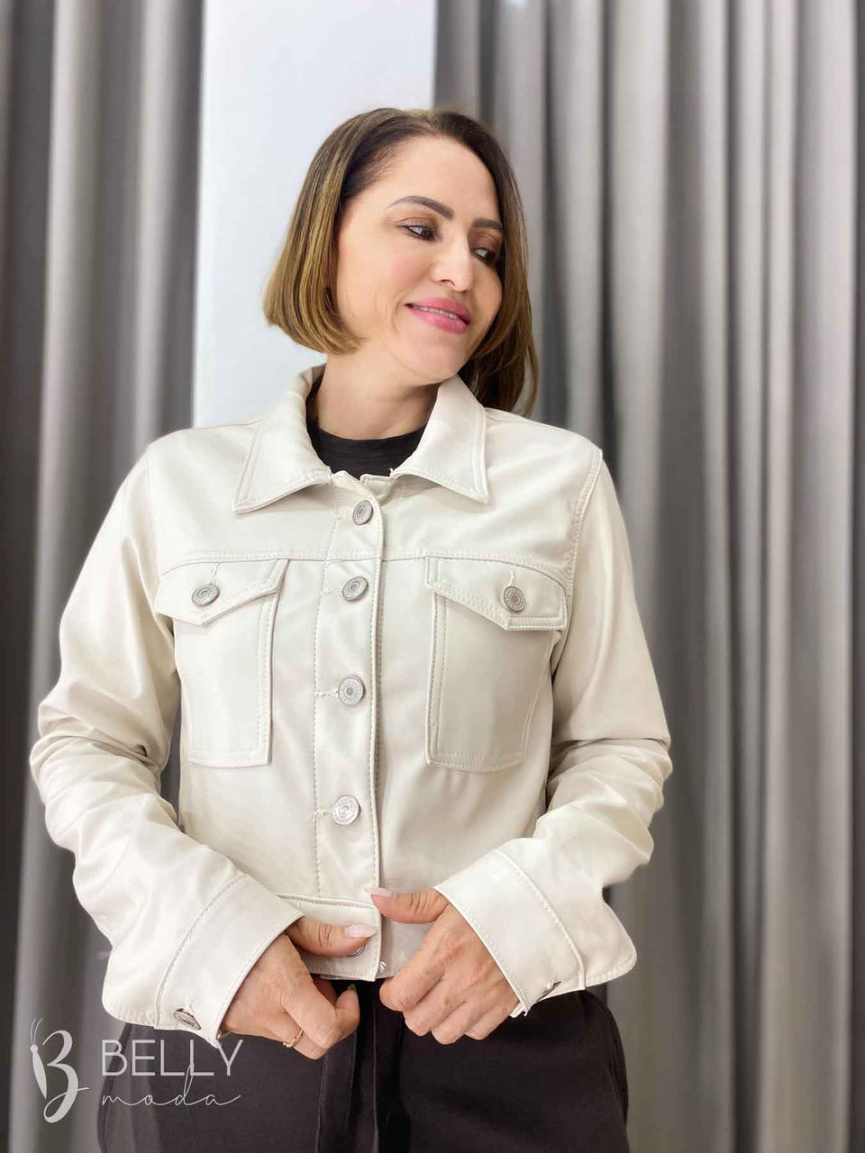 Jaqueta em couro PU ecológico de altíssima qualidade, com manga longa, punho e fechamento em botão. Possui gola tradicional, bolso frontal com lapela e fechamento em botões, toda pespontada em cor de linha na mesma tonalidade da peça, com modelagem ótima. Uma peça moderna e estilosa para complementar seu look em dias mais frescos.
