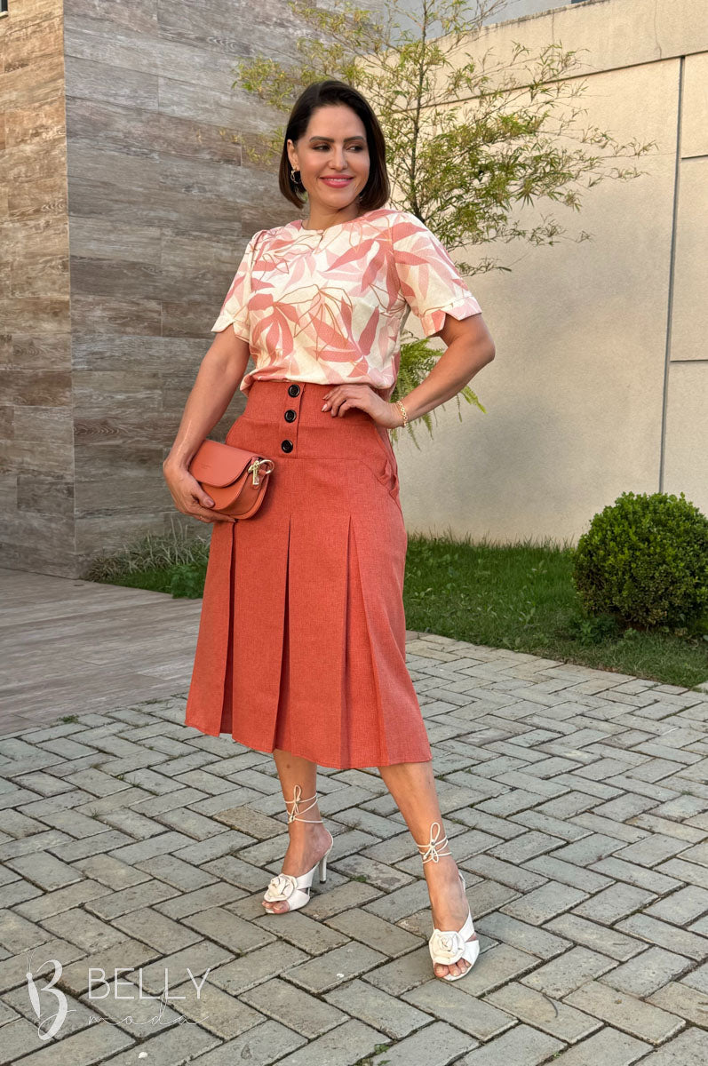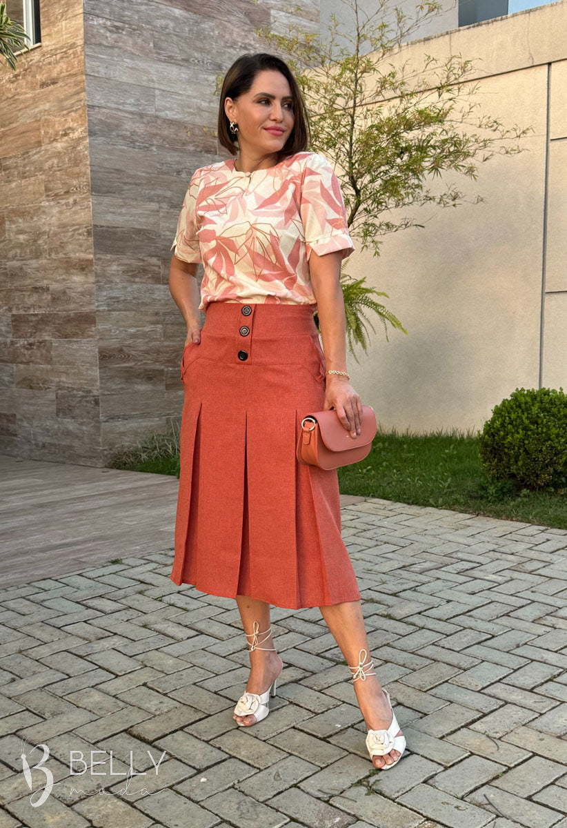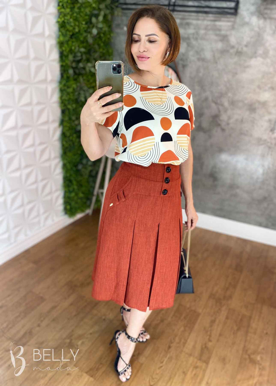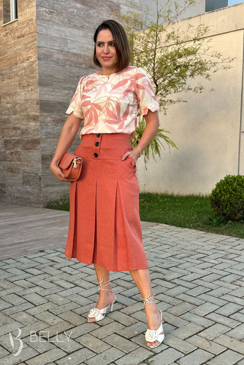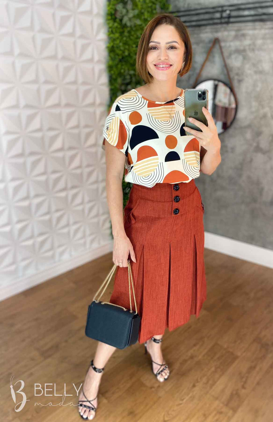 Saia Betina Lisa em Poliéster Leve Casual Elegante