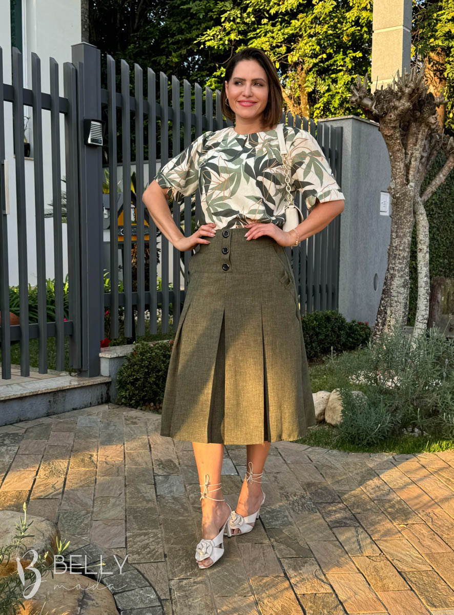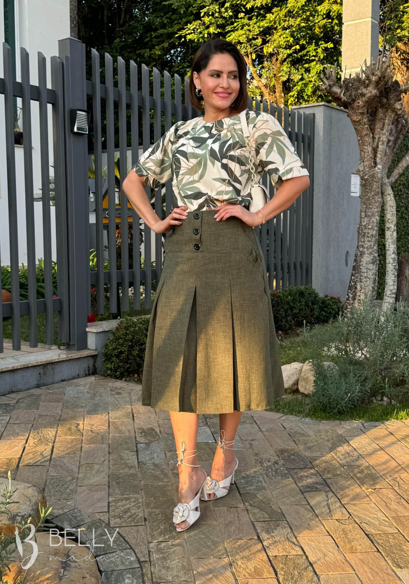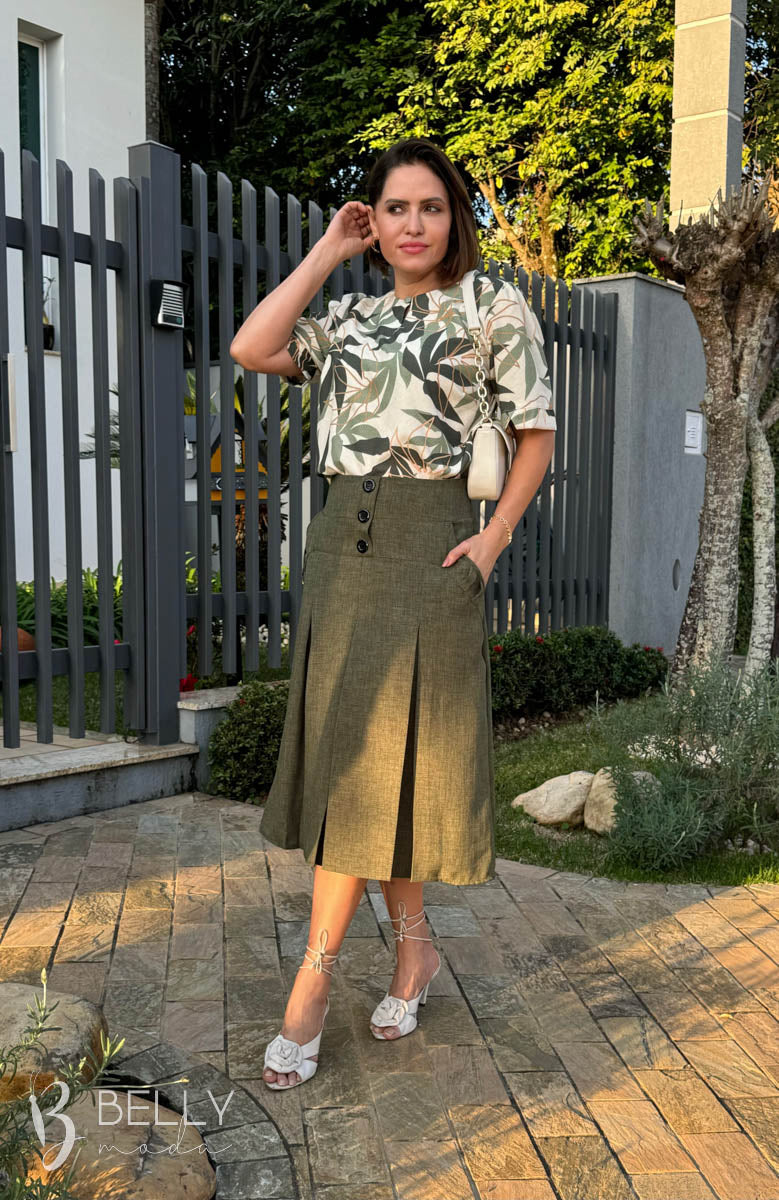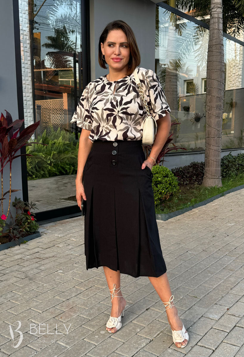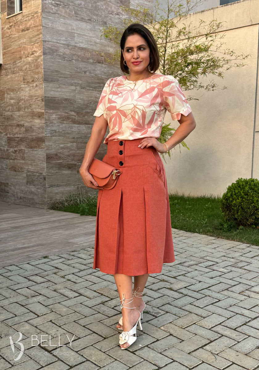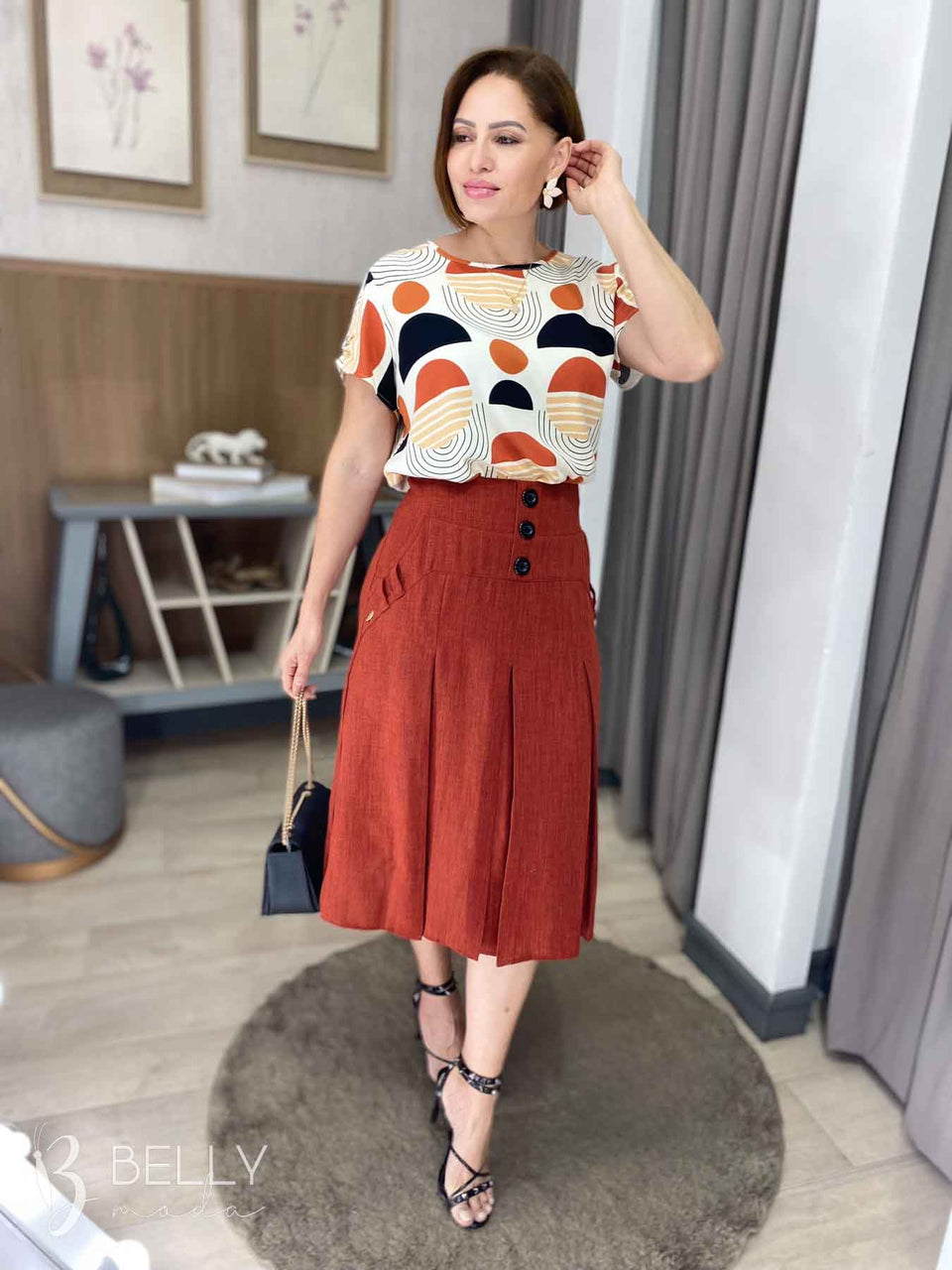 Saia Betina Lisa em Poliéster Leve Casual Elegante