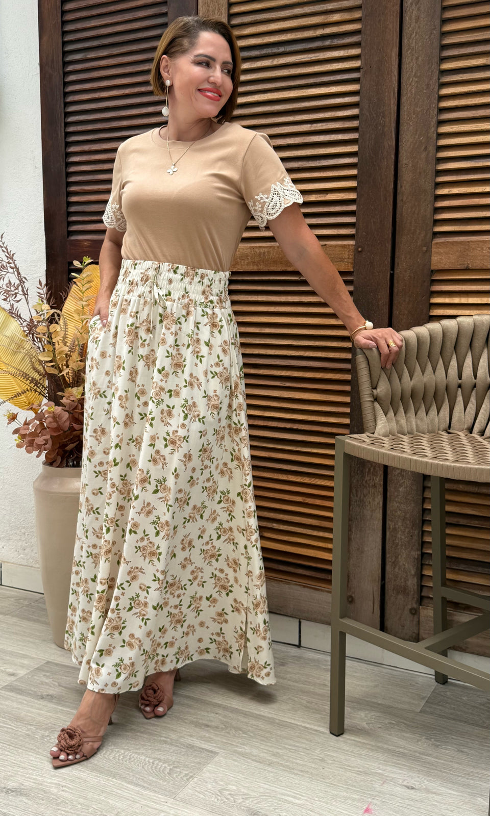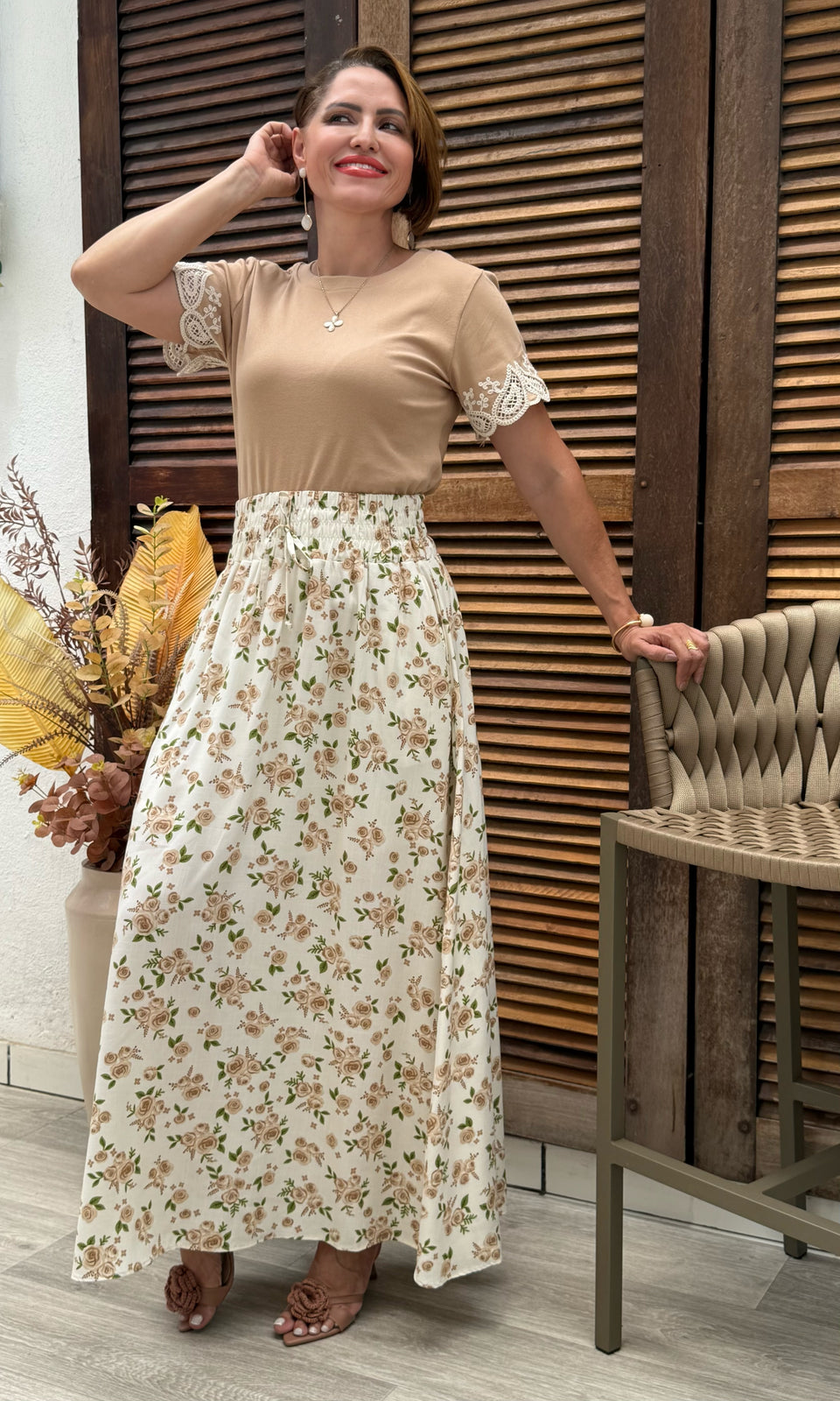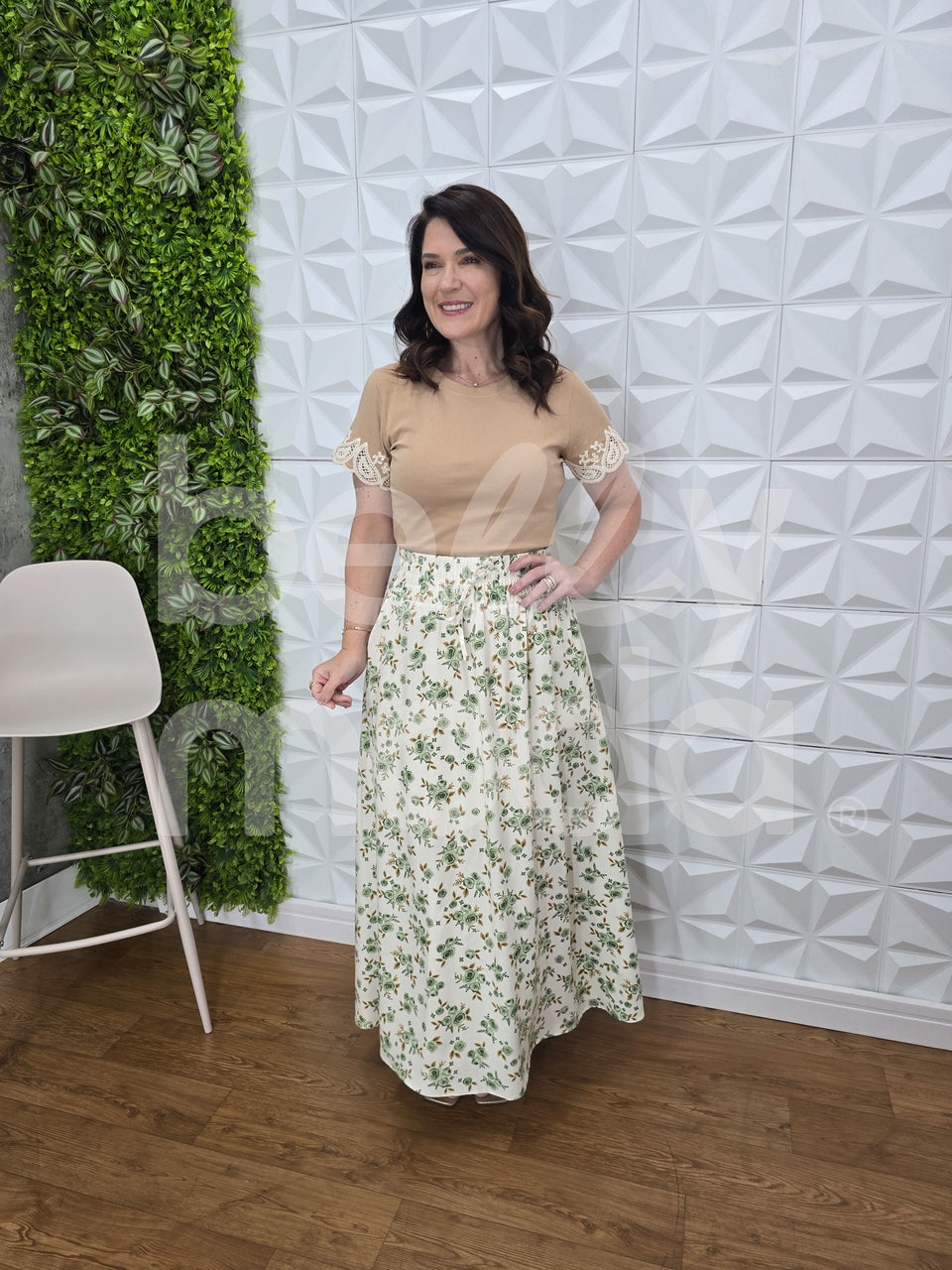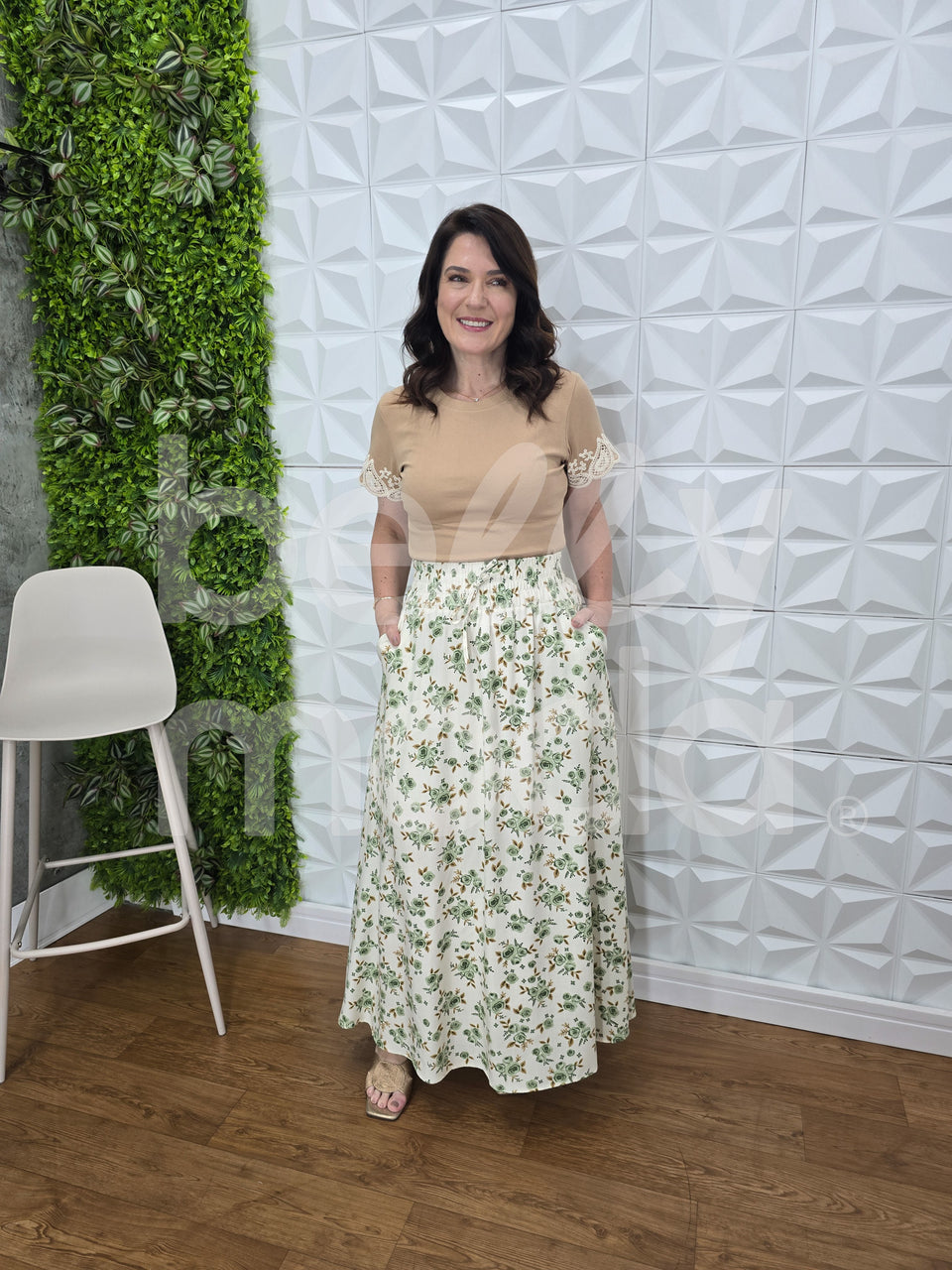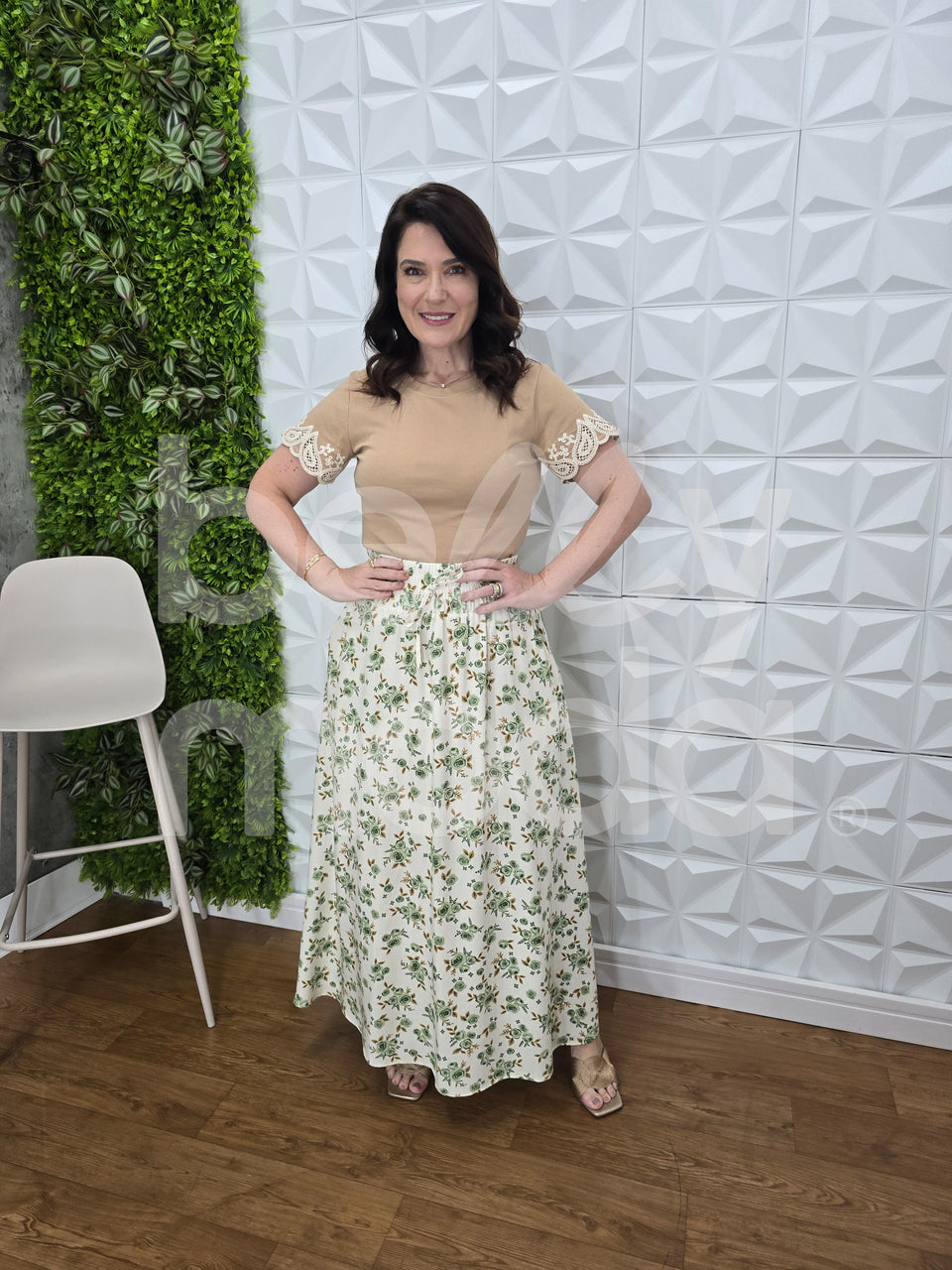 A saia Drika com bolso Max Midi da marca Belly Moda é confeccionada em viscose, com modelagem godê. Possui bolsos laterais, cós largo todo costurado no lastex para um ajuste perfeito, fenda lateral e comprimento longo. Uma peça versátil e confortável, perfeita para diversas ocasiões.