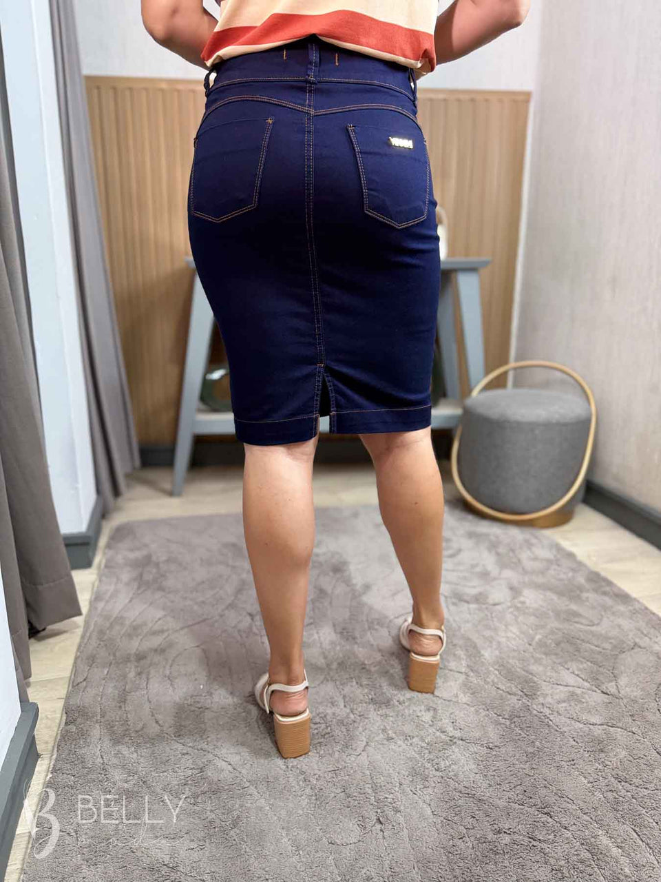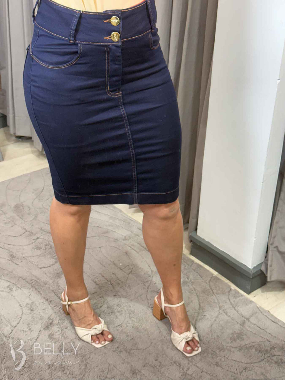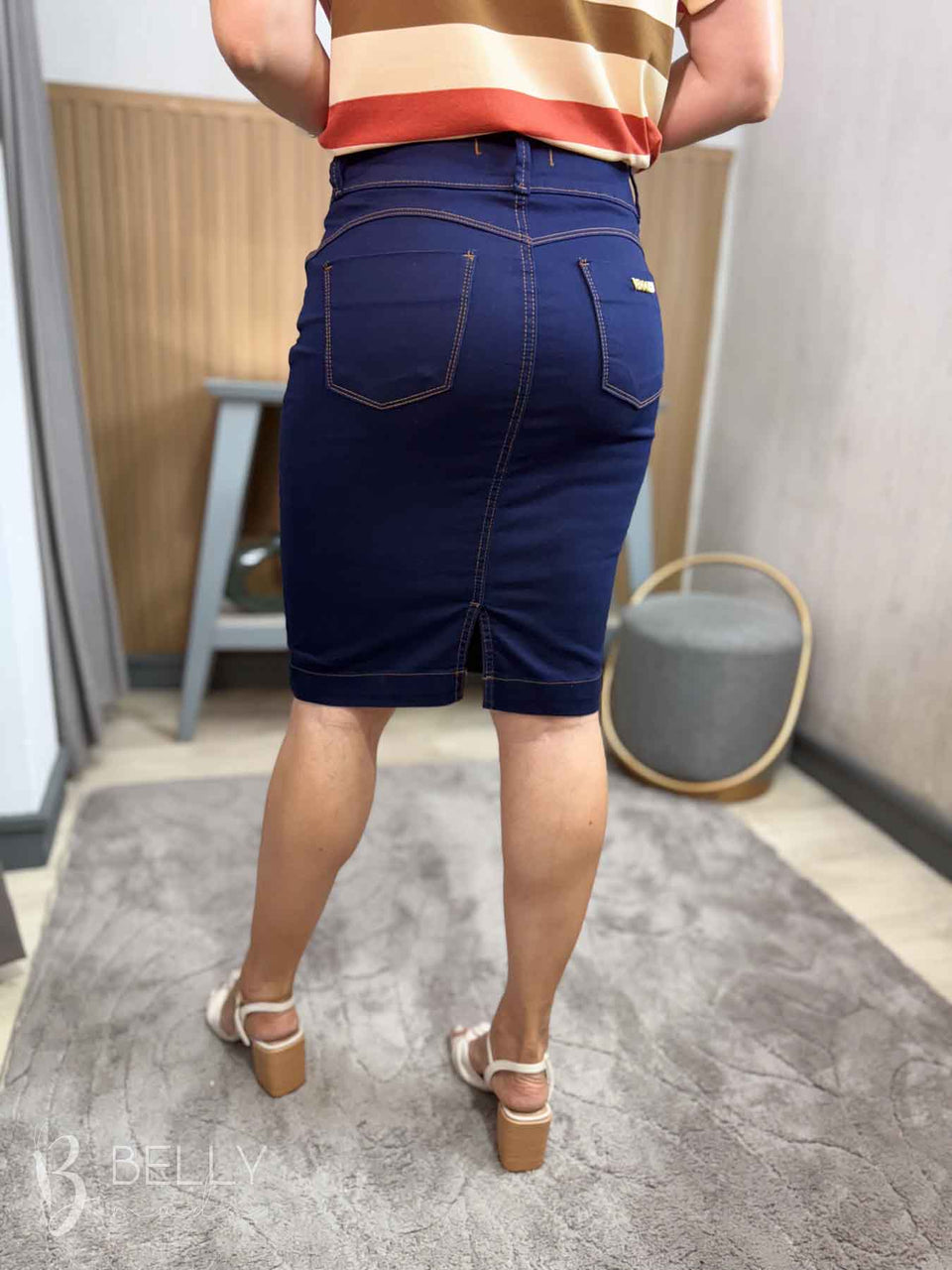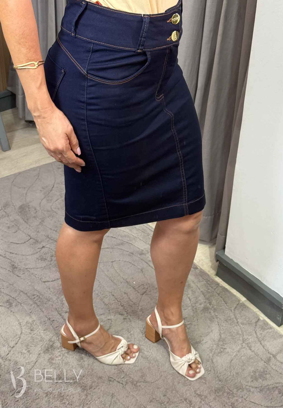 Peça indispensável para o seu guarda-roupa, a Saia Jeans Escuro Sarja Tradicional da Vecchi Jeans é confeccionada em sarja de alta qualidade com elastano. Com bolsos funcionais na parte frontal e posterior, aviamentos em dourado e pesponto em cor de linha nude, essa saia possui comprimento na altura do joelho e uma fenda leve na parte posterior para maior mobilidade. Seu fechamento é frontal em zíper e botões personalizados, e a modelagem mais ajustada conta com passantes para maior versatilidade no uso.
