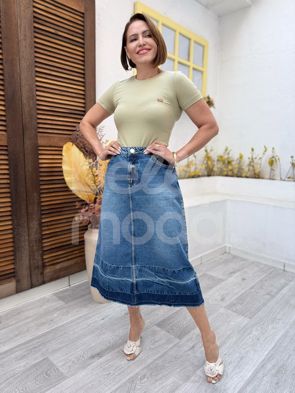 Confeccionada em jeans com 80 cm de comprimento, trazendo estilo e versatilidade ao look feminino. O detalhe da barra desfiada adiciona um toque moderno, enquanto os cortes inteligentes garantem caimento impecável e confortável. Uma peça prática e cheia de personalidade.