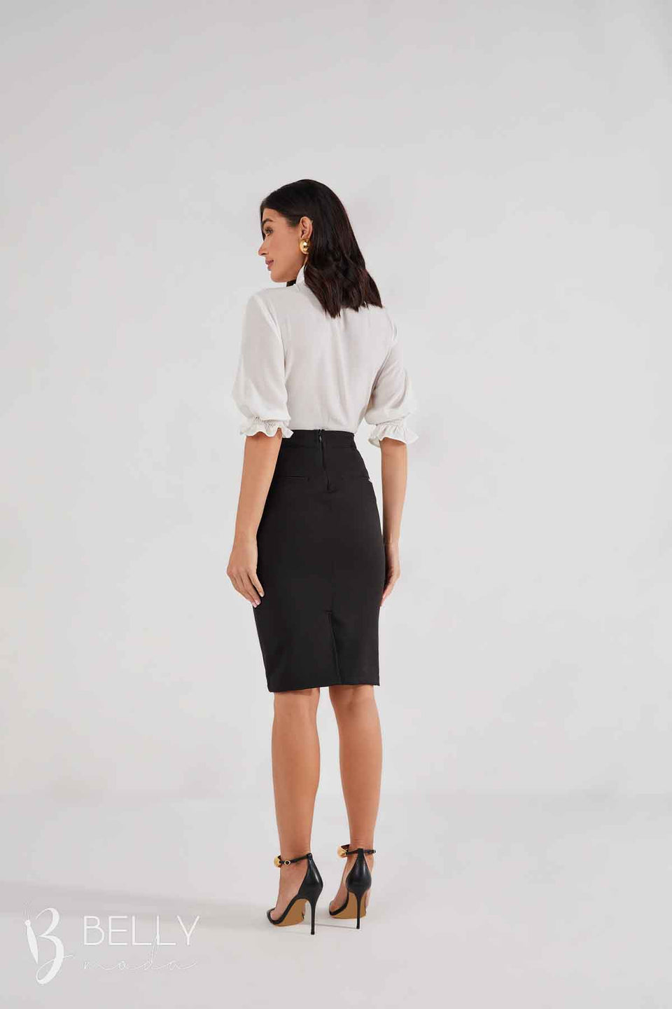 Saia Reta Alfaiataria Preta