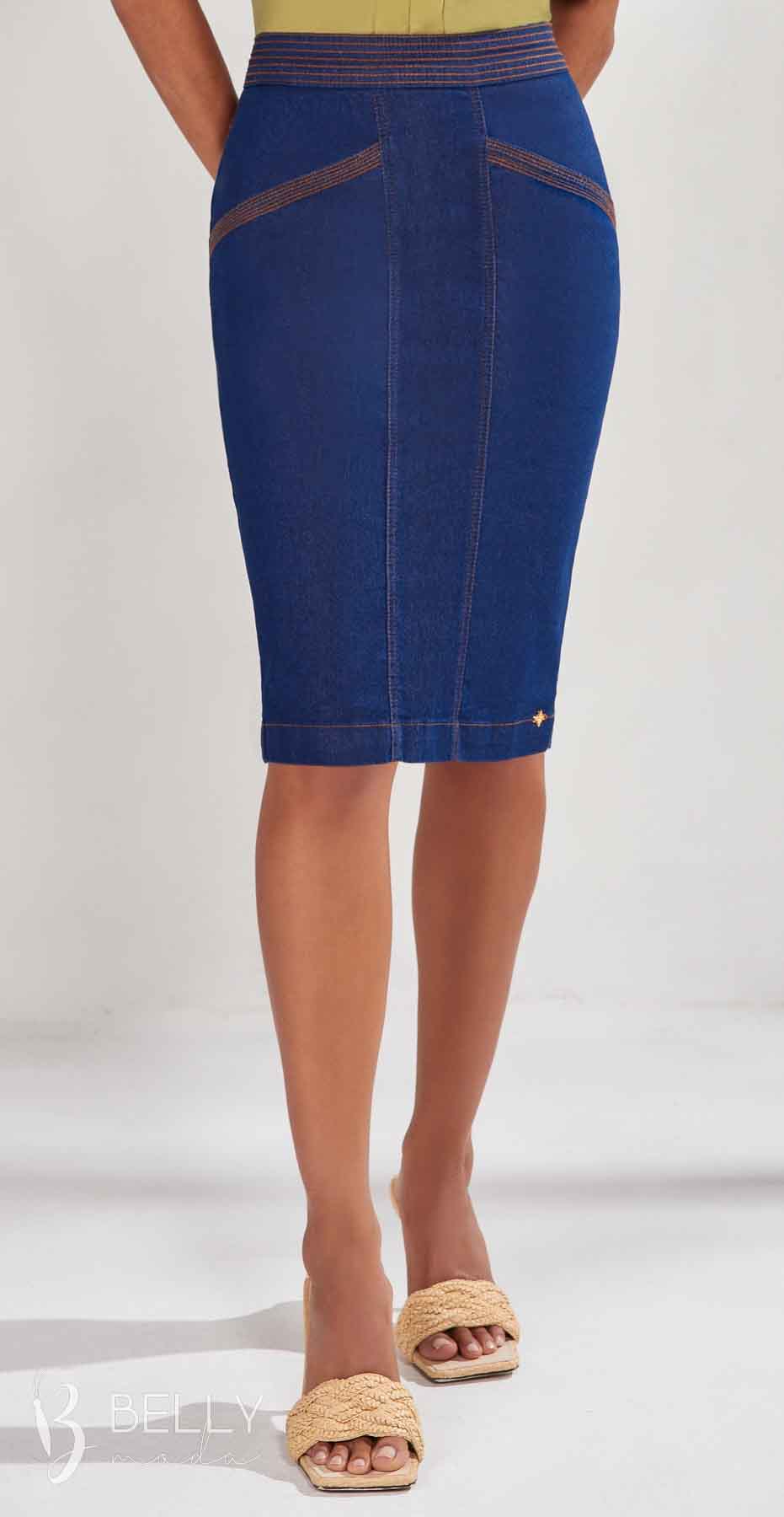 Destaque seu estilo com a Saia Reta Jeans com Detalhe de Costura Titanium Jeans. Confeccionada em jeans de alta qualidade, essa saia possui modelagem reta e lavanderia amaciada. Com cor de linha marrom e aviamentos dourados, conta com bolsos frontais e traseiros funcionais, além de abertura traseira em zíper. O diferencial dessa peça está nos pespontos no cós e na boca do bolso, garantindo um visual único e cheio de charme.