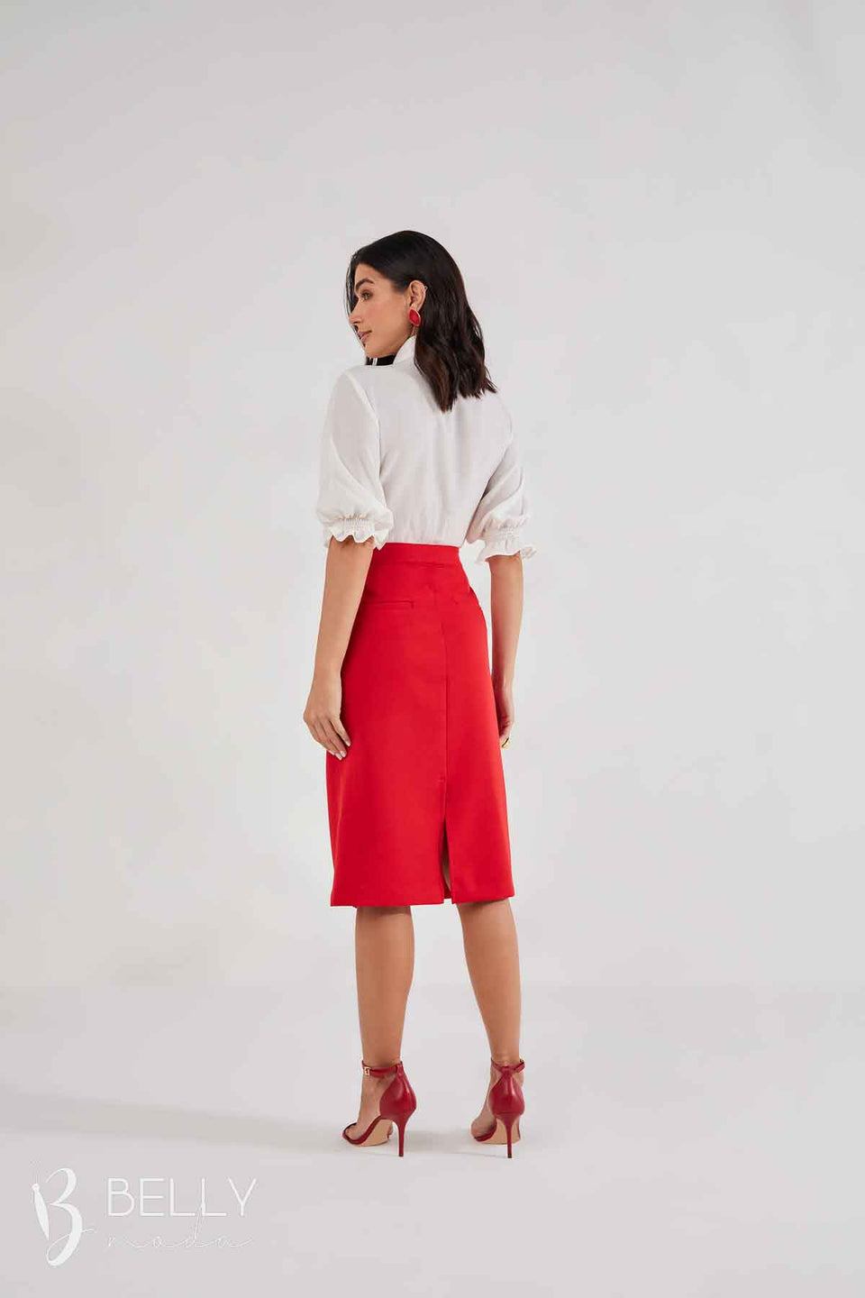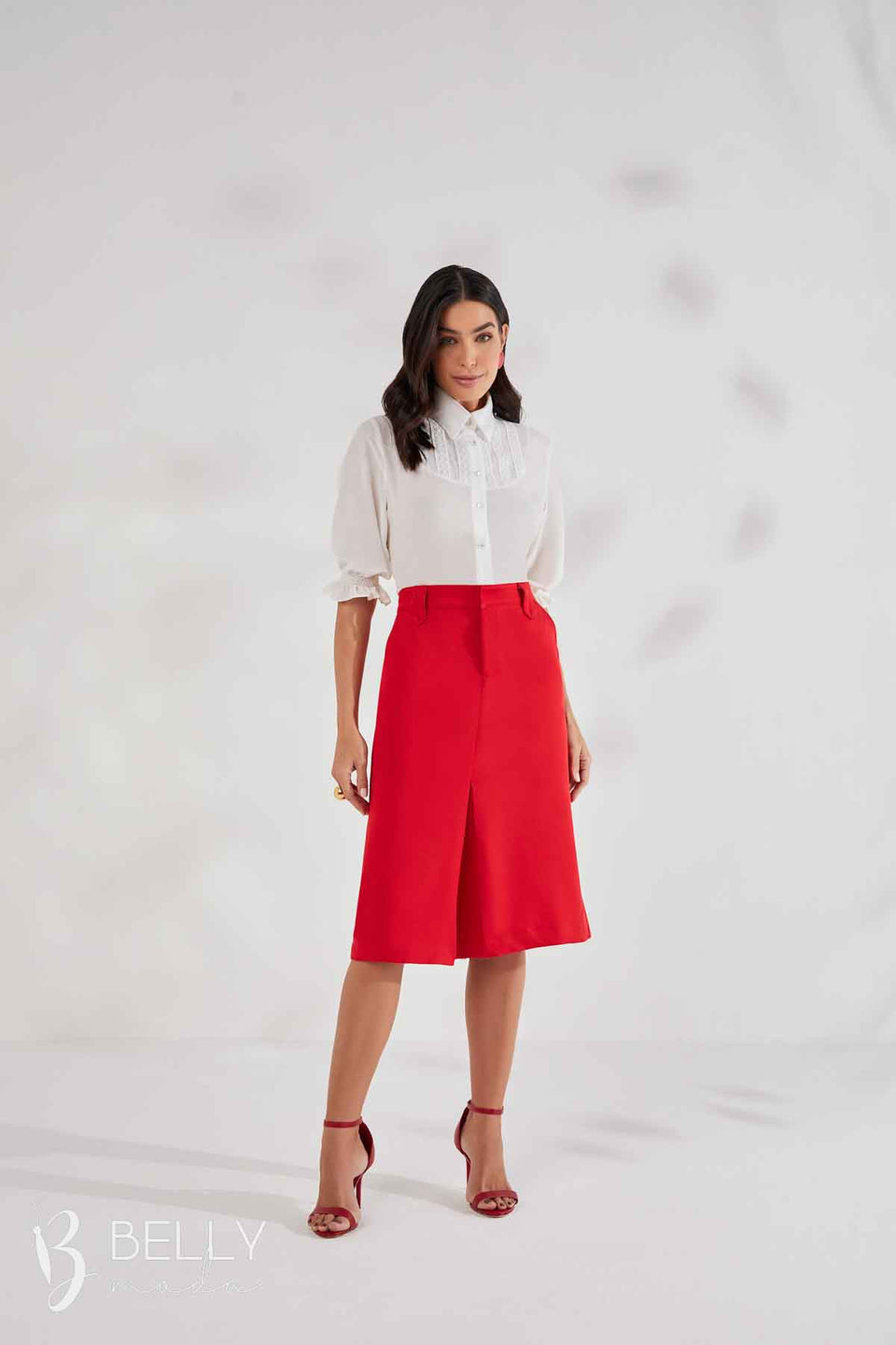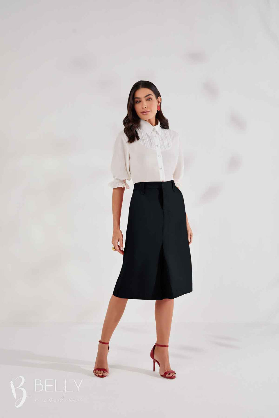 Combine a Saia Semi Evasê em Alfaiataria Titanium Jeans com uma blusa de seda para um look sofisticado, ou com uma t-shirt para um visual mais casual.
