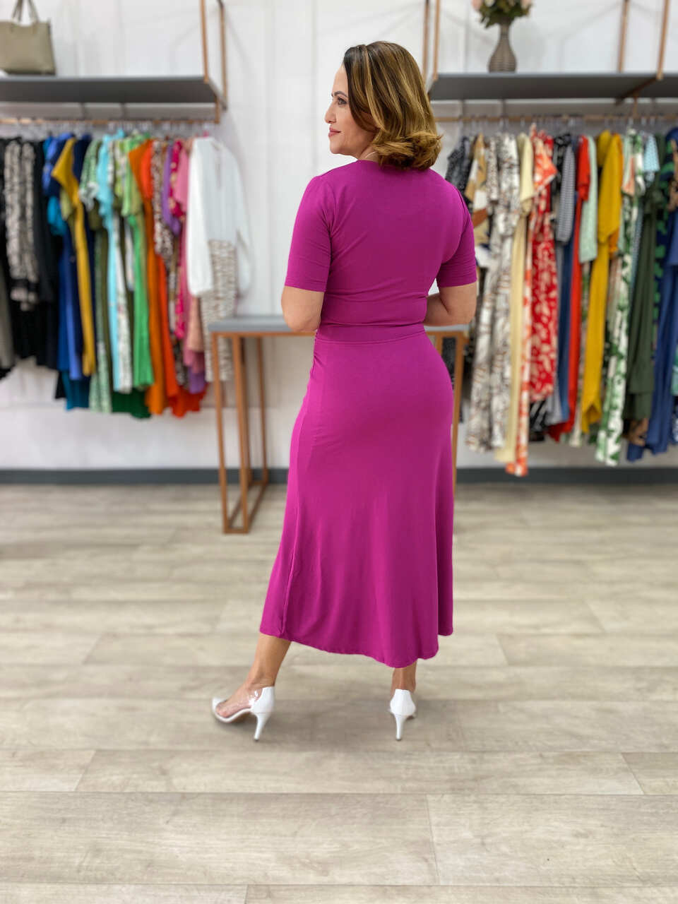 Vestido Agnes Midi Laguine é confeccionado em moletinho, com modelagem mais ajustada e recortes frontais que proporcionam um melhor ajuste ao corpo. Possui faixa fixa na cintura para ajuste e marcação, além de manga curta. Seu comprimento é abaixo do joelho, tornando-o uma peça indispensável para seu conforto no dia a dia.
