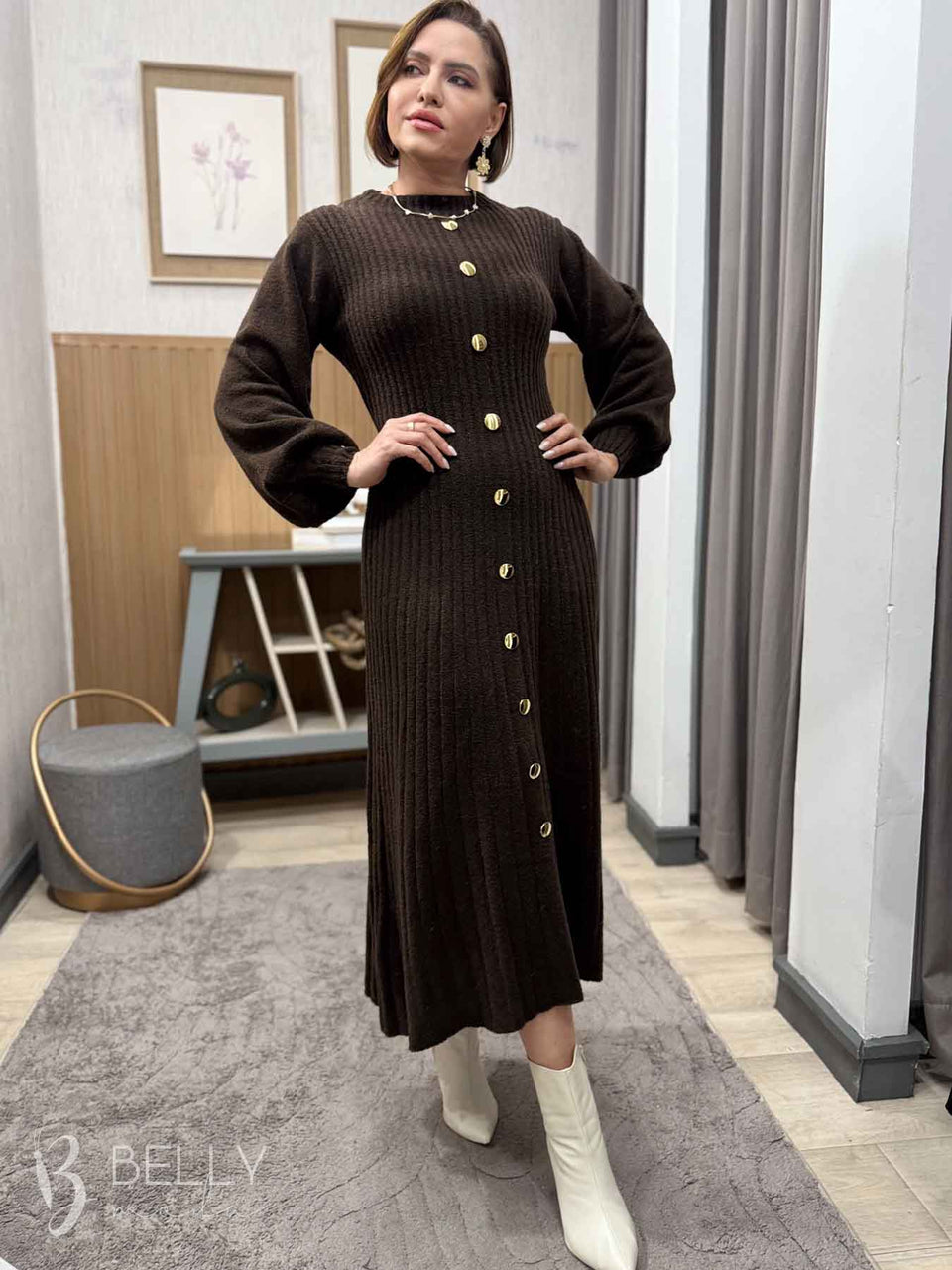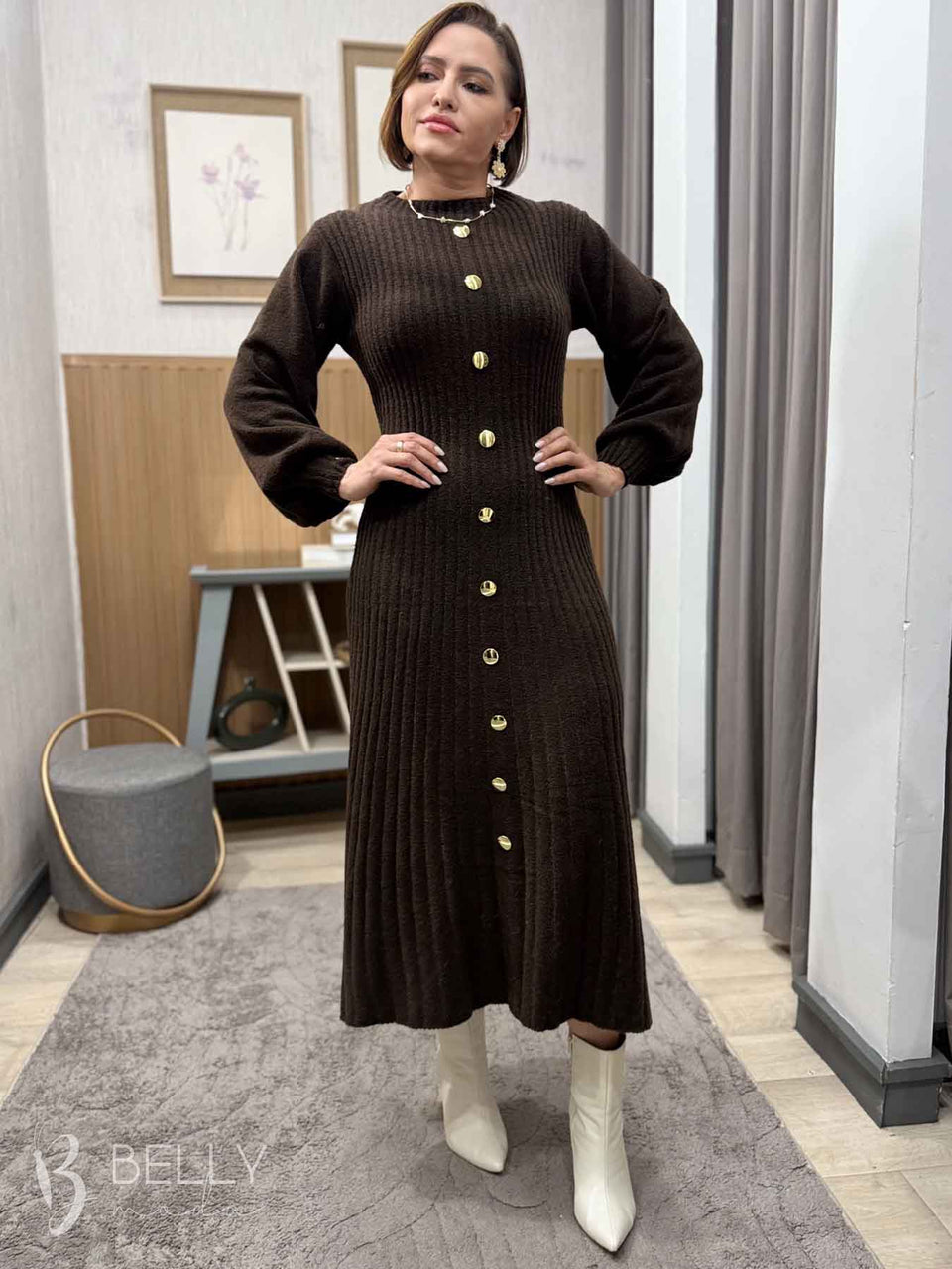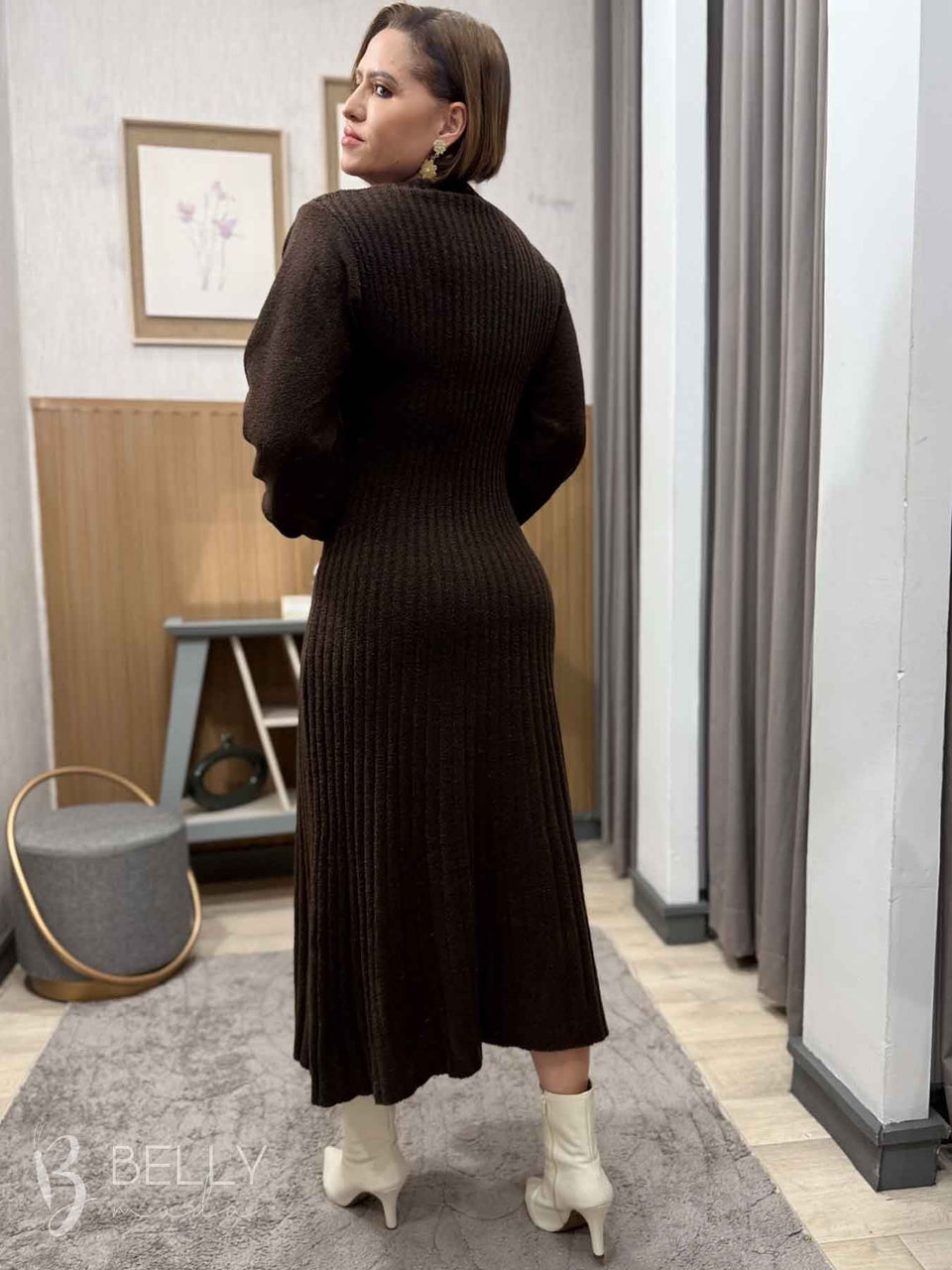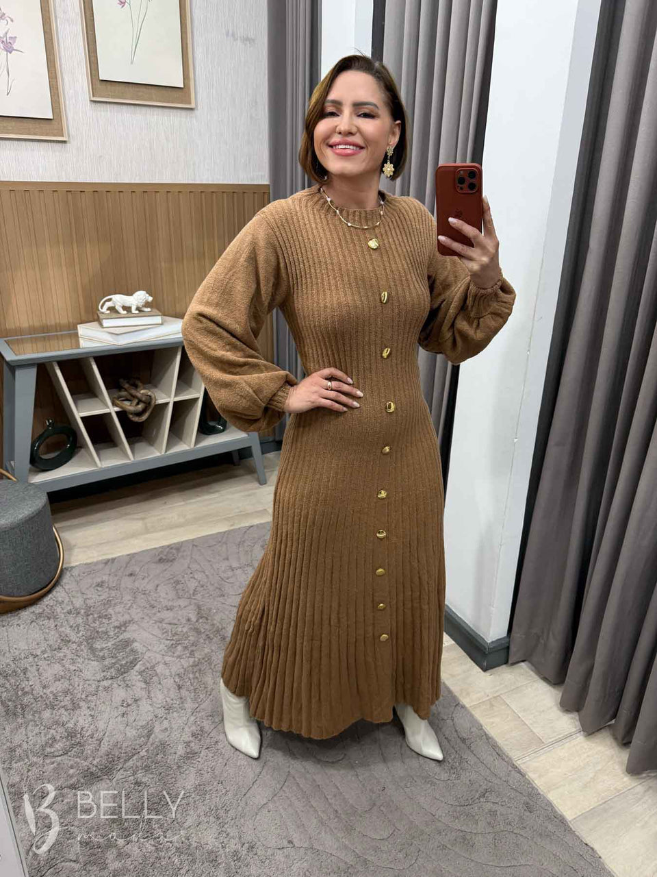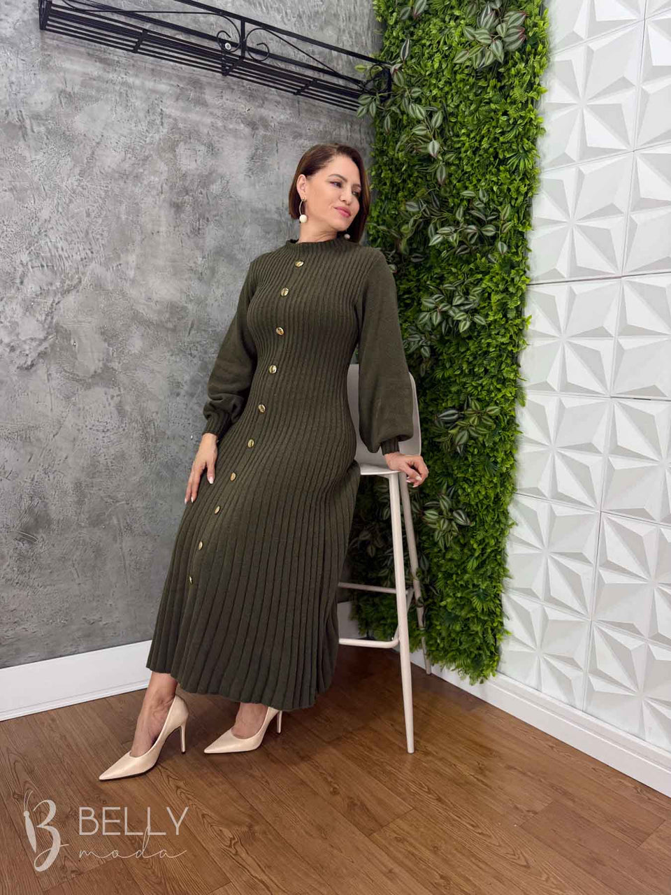 Vestido Alexia em tricô mousse da Belly Moda. Com modelagem evasê, este vestido é confeccionado em tricô mousse com trama e pontos no canelado. Possui manga longa mais balone com punho max, gola careca e comprimento midi. Simplesmente lindo e perfeito para quem quer estar elegante e confortável.