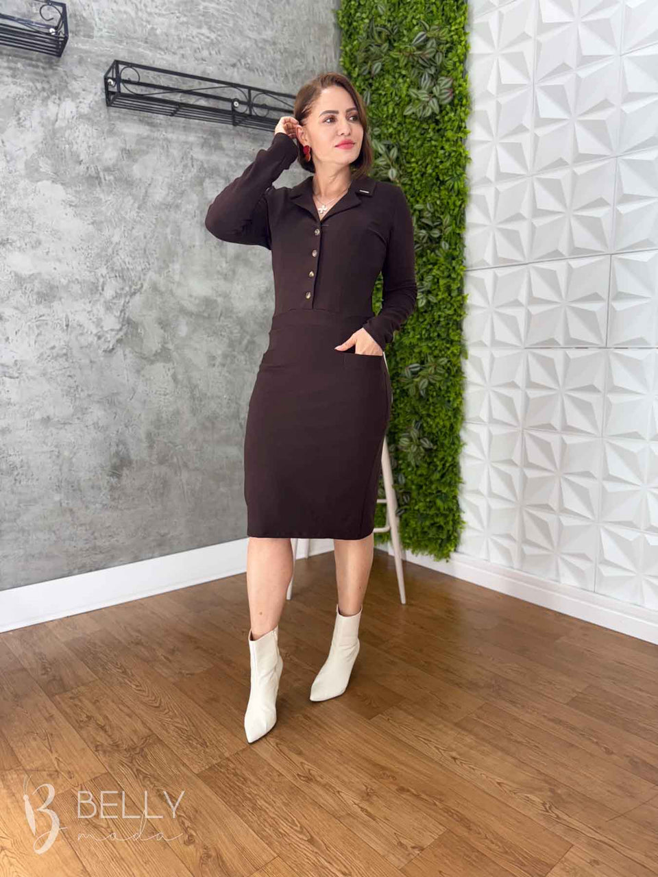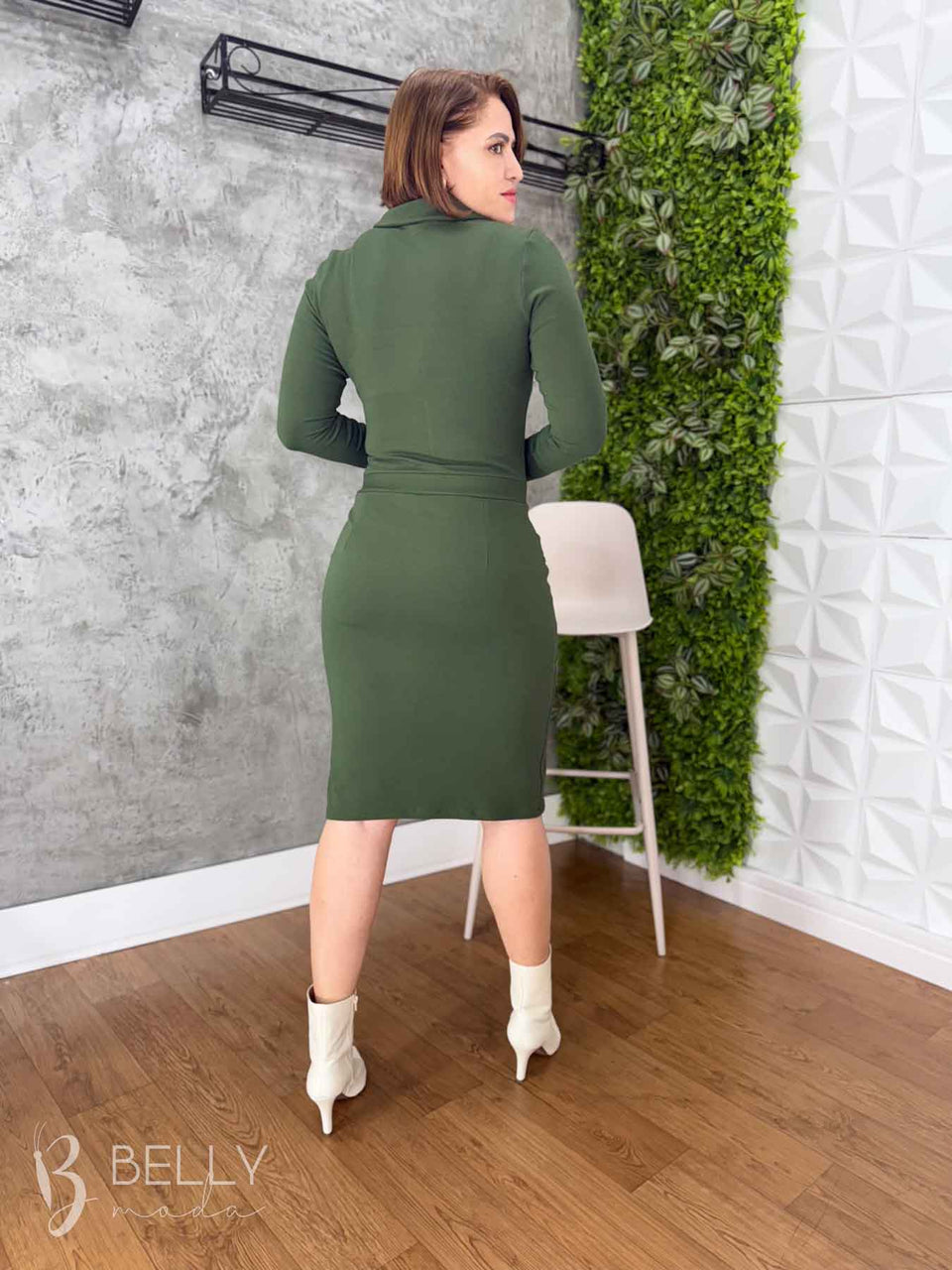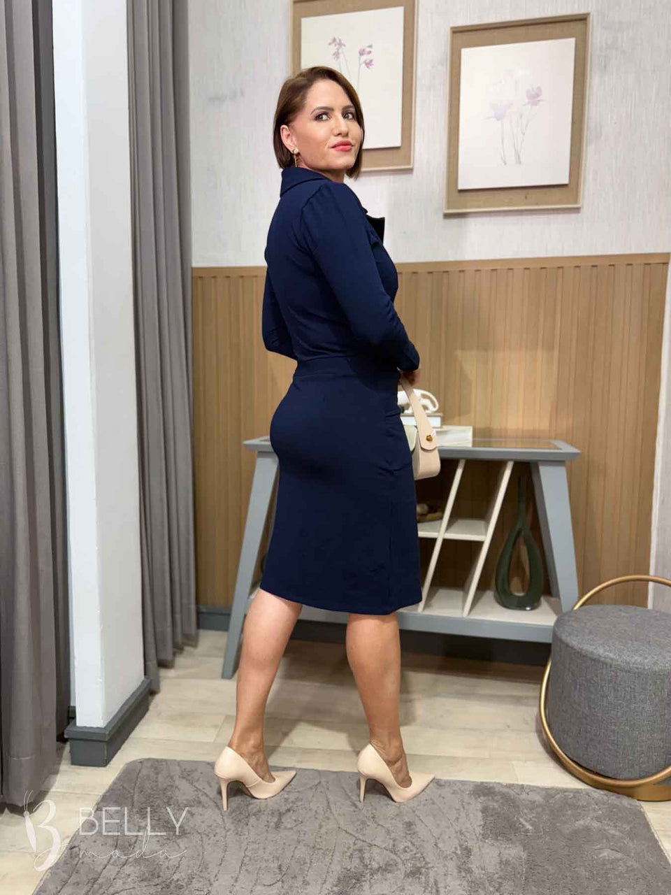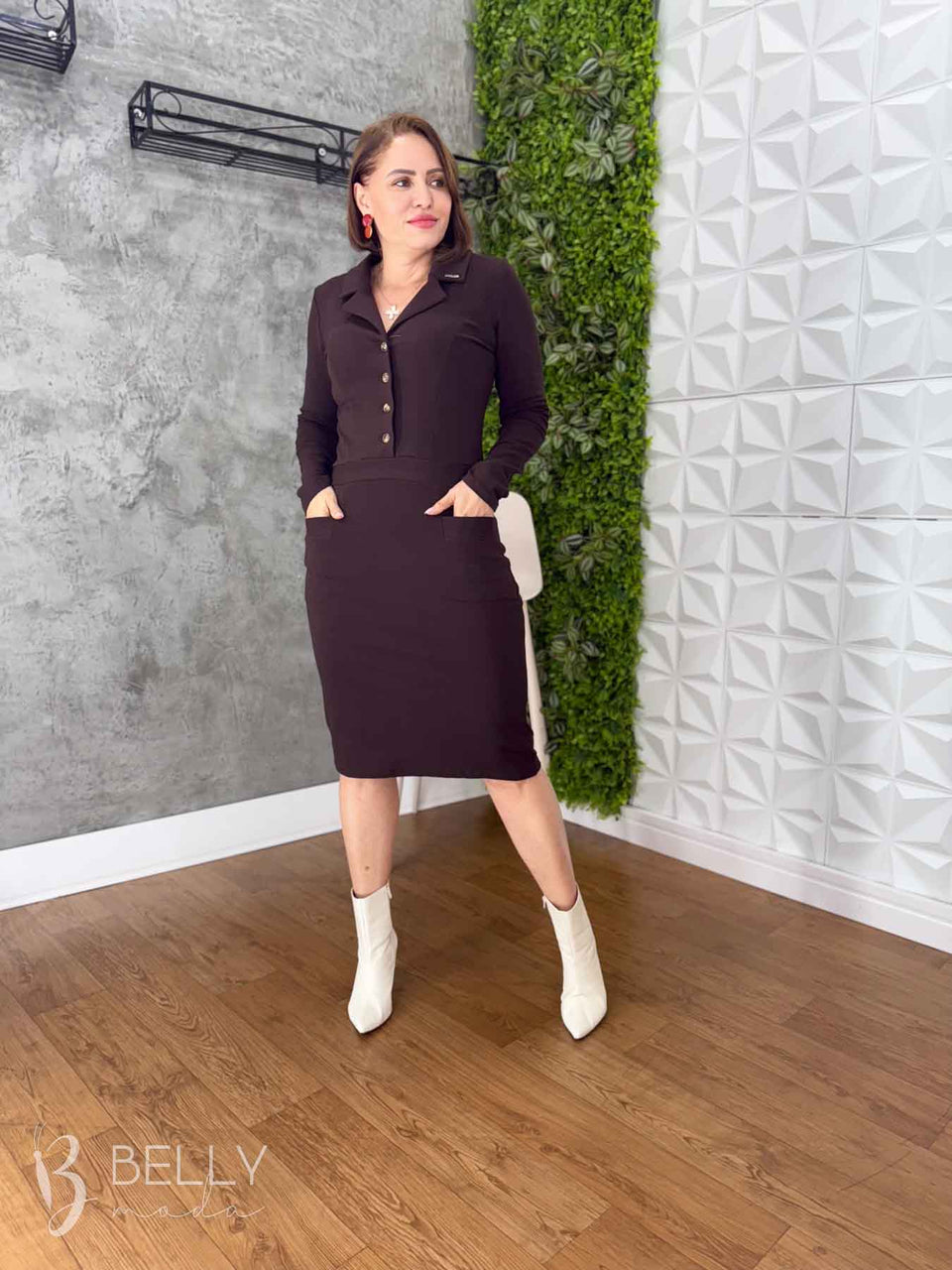 Vestido Ana Luíza Manga Longa da marca Belly Moda. Com modelagem mais ajustada, manga longa e gola de camisa com fechamento em botões frontais, este vestido é perfeito para compor looks tanto básicos quanto mais elaborados. Possui um recorte na cintura, bolsos frontais funcionais e é confeccionado em moletinho encorpado com bastante elastano, proporcionando conforto e caimento impecável. Seu comprimento fica abaixo do joelho para a modelo de 1,64m de altura, que veste tamanho P.