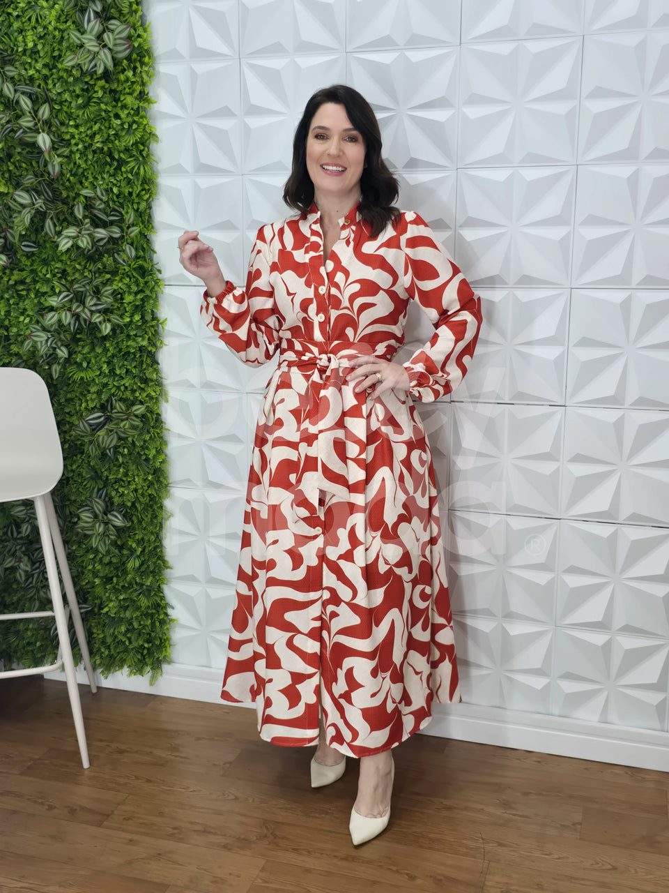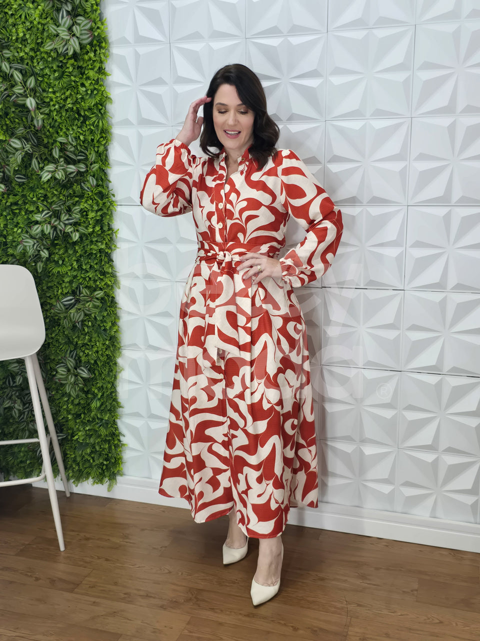 Vestido longo Andreza da marca Belly Moda, confeccionado em crepe Gloss. Possui manga longa com elástico, decote em "V" discreto com fechamento em botões. A saia conta com pregas e bastante tecido para dar movimento e fluidez à peça. Na cintura, uma faixa larga e comprida permite várias amarrações para marcar a cintura. Um vestido simplesmente elegante e lindo, ideal para diversas ocasiões.