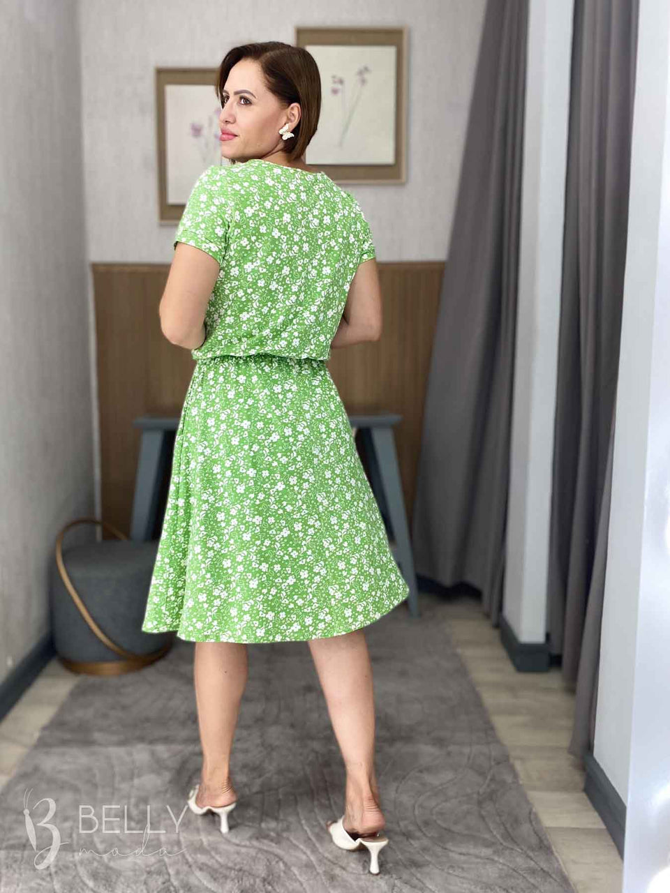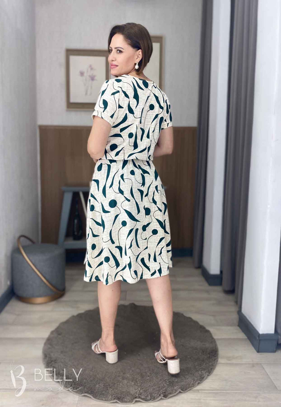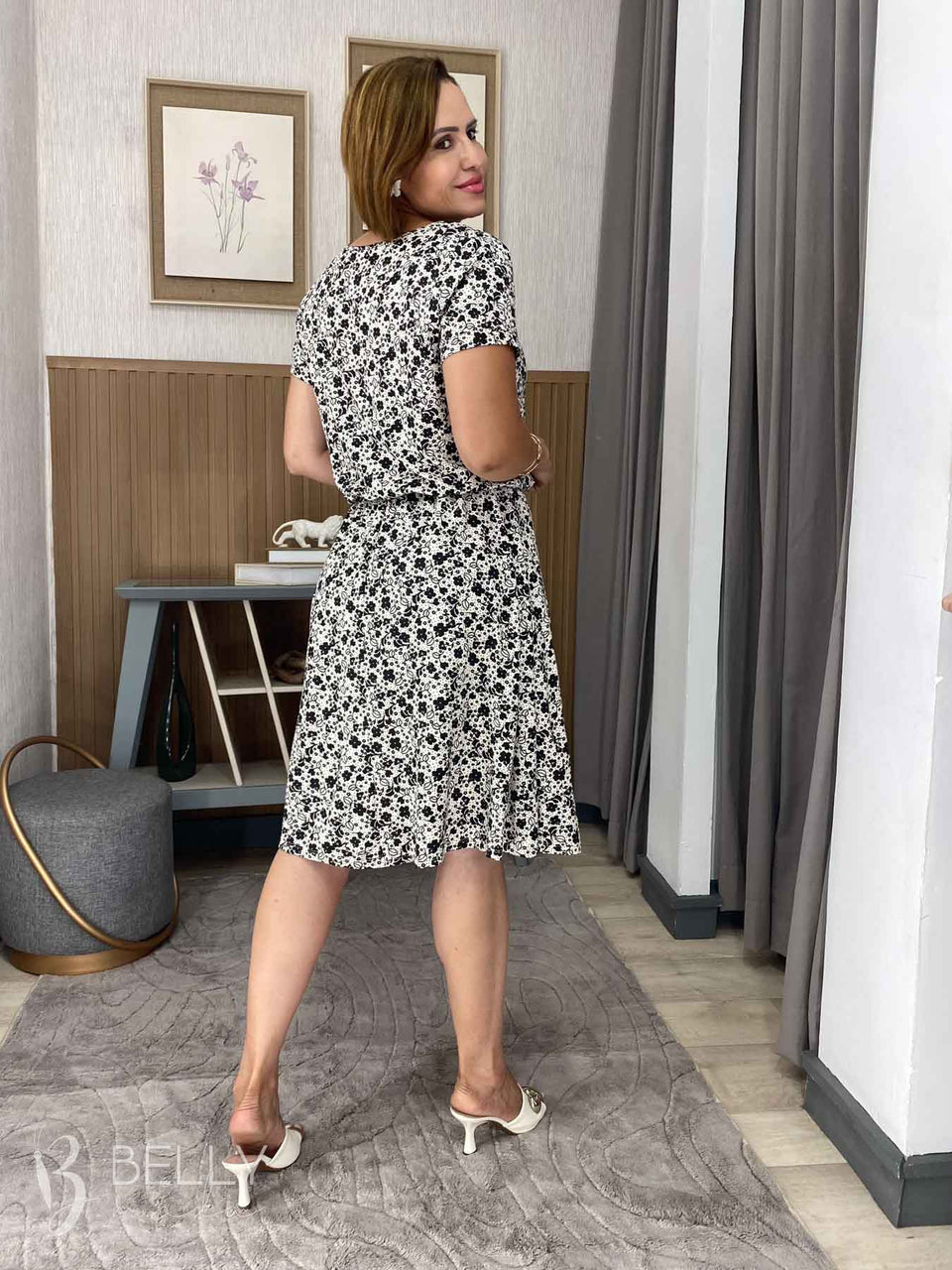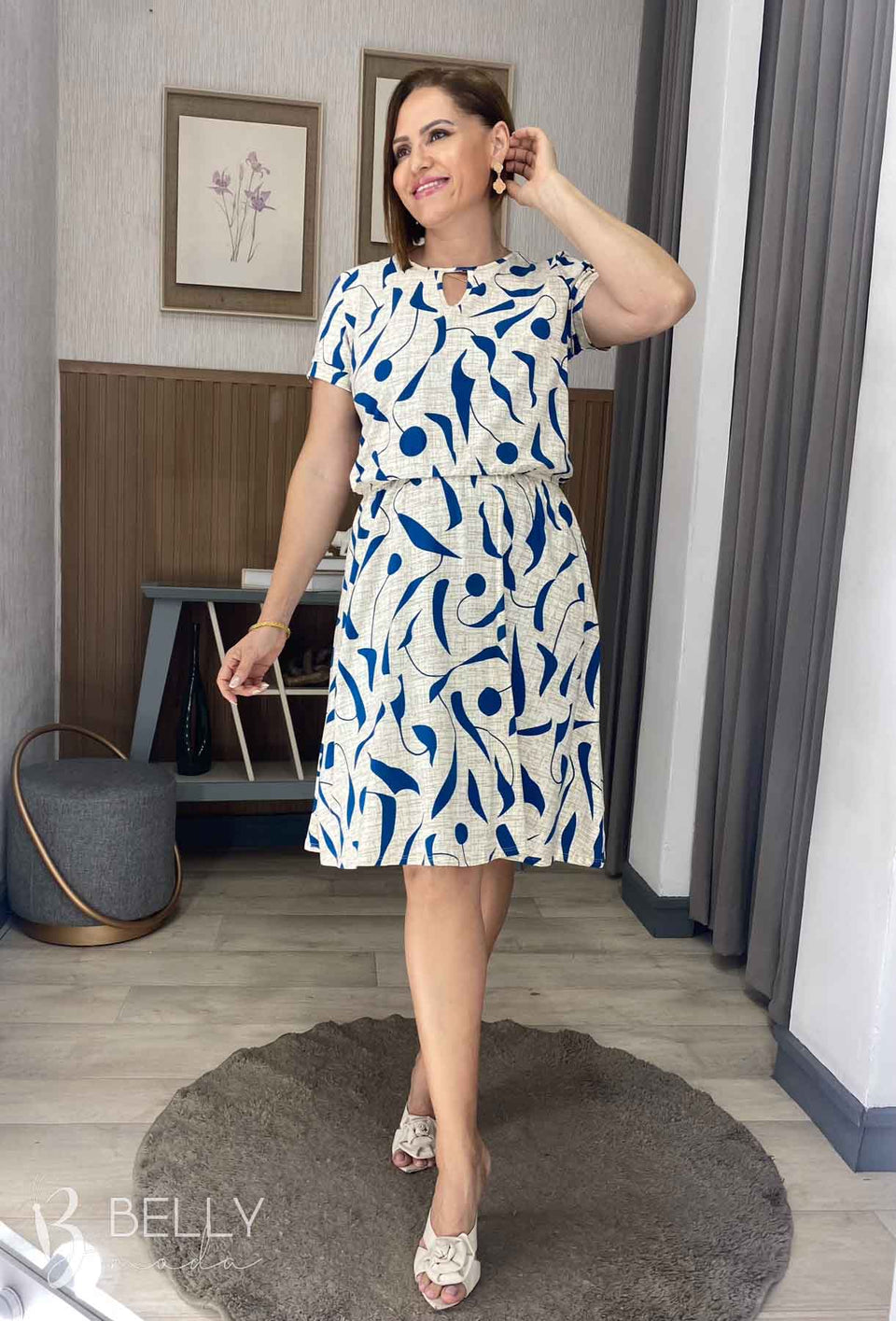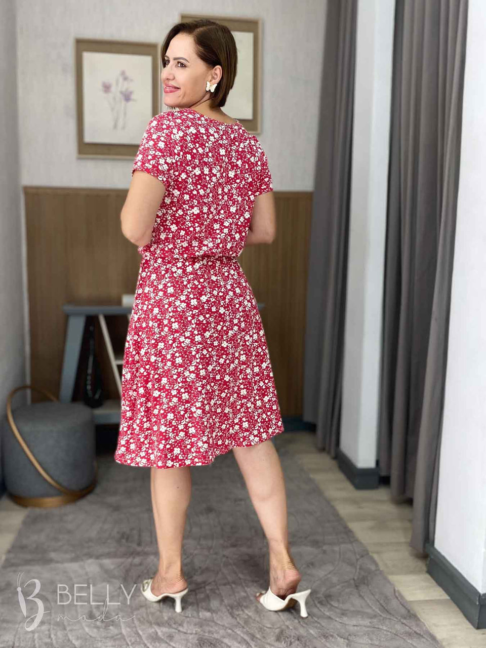 Vestido Angélica estampado, da marca Belly Moda, é uma peça elegante e versátil. Com modelagem godê, esse vestido possui manga curta, decote canoa com detalhe vazado, elástico na cintura, bolso lateral e comprimento na altura do joelho. Seu tecido de malha viscolycra premium proporciona um toque macio e suave, garantindo conforto e estilo.