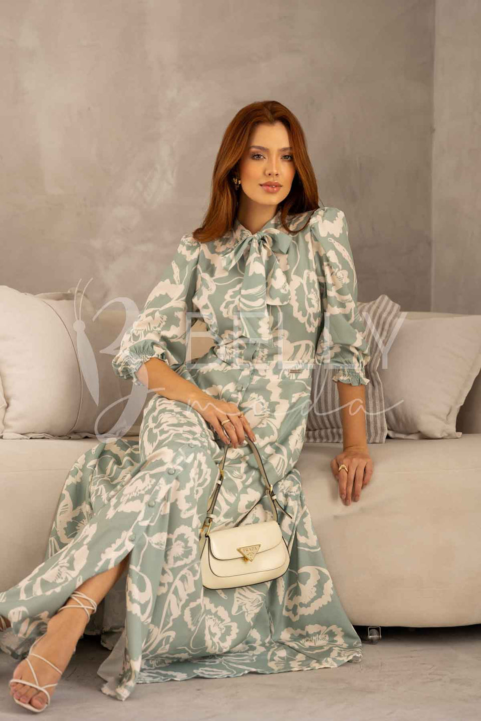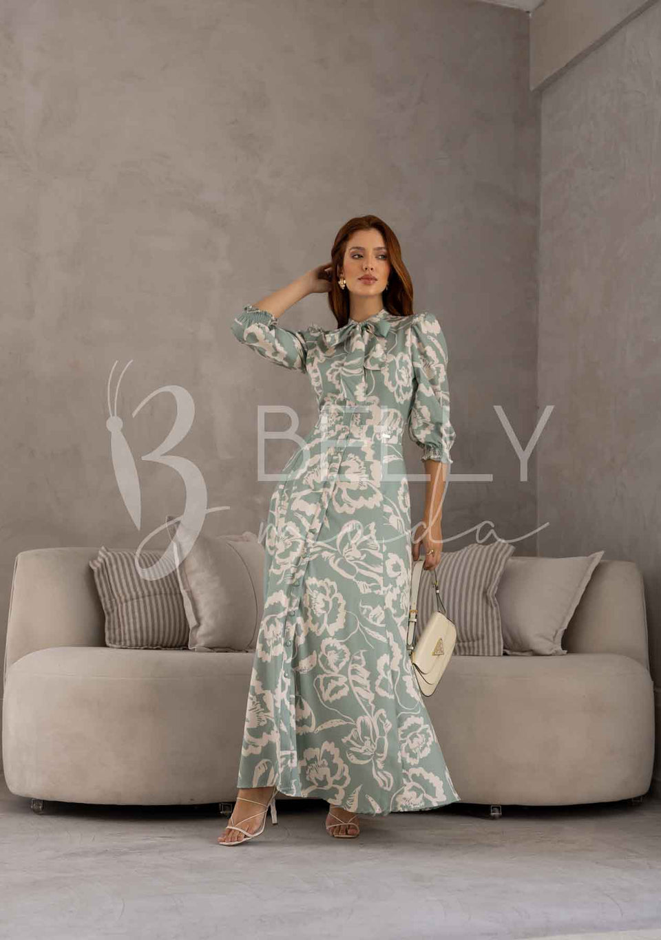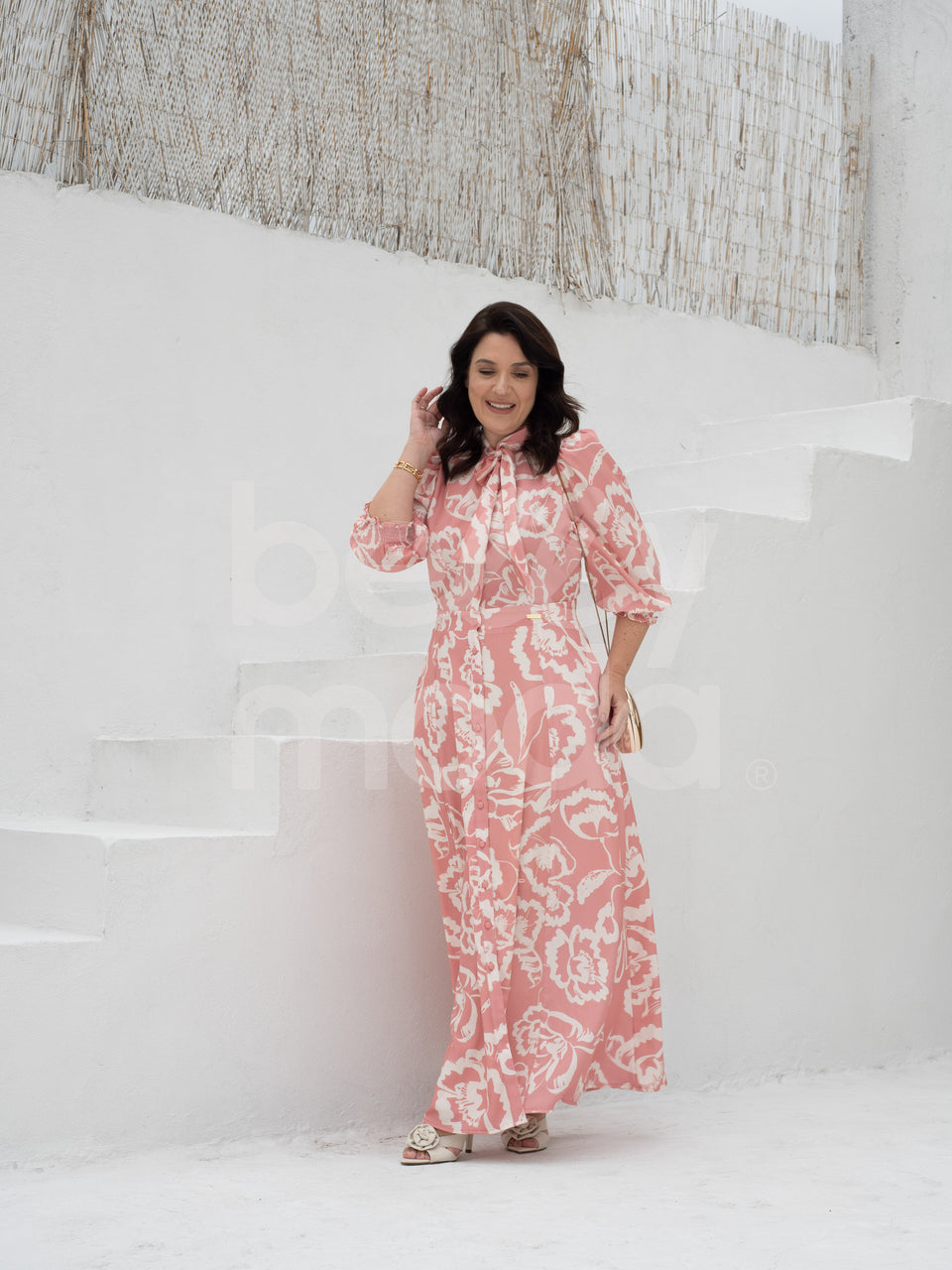 Vestido Chemisier Aline da marca CRIS ASSUMPÇÃO, confeccionado em crepe Verona, apresenta uma estampa floral minimalista e atemporal. Sua modelagem é fluida e feminina, com botões frontais encapados no mesmo tecido, manga ¾ com punho em lastex e um detalhe especial na gola: uma faixa fixa que permite um laço sofisticado. Este vestido é versátil, estiloso e cheio de personalidade.