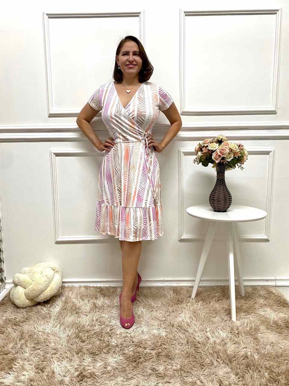 Combine este vestido estampado com sandálias de salto para uma produção sofisticada, ou com sapatilhas para um look mais casual.