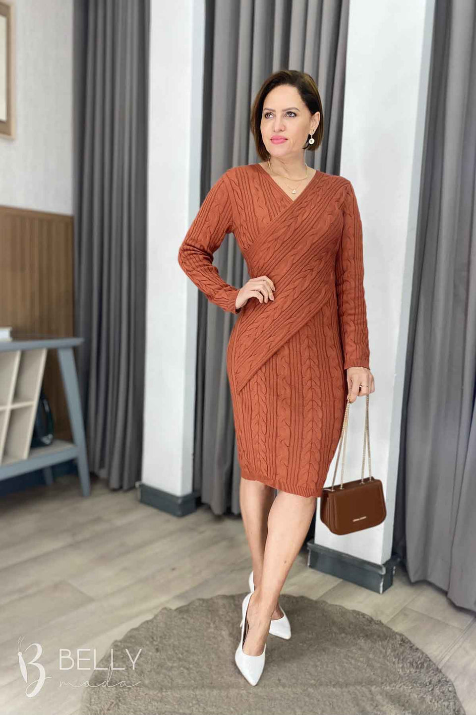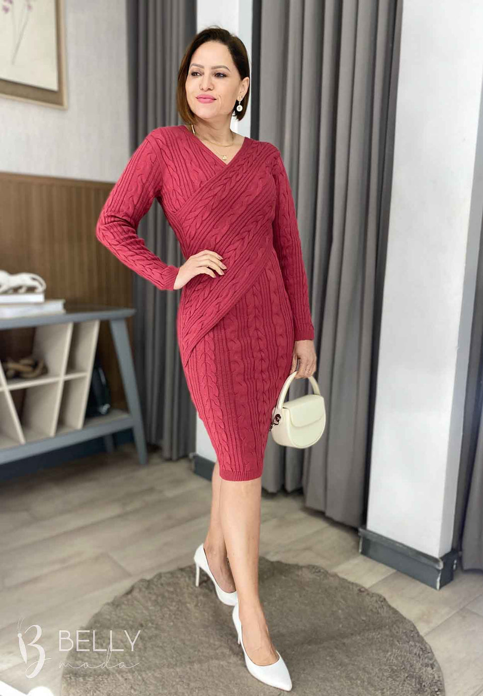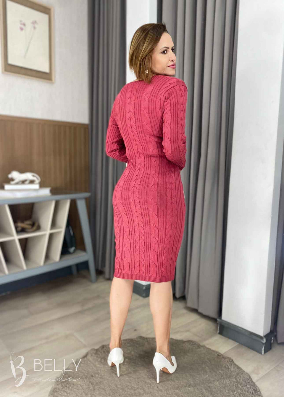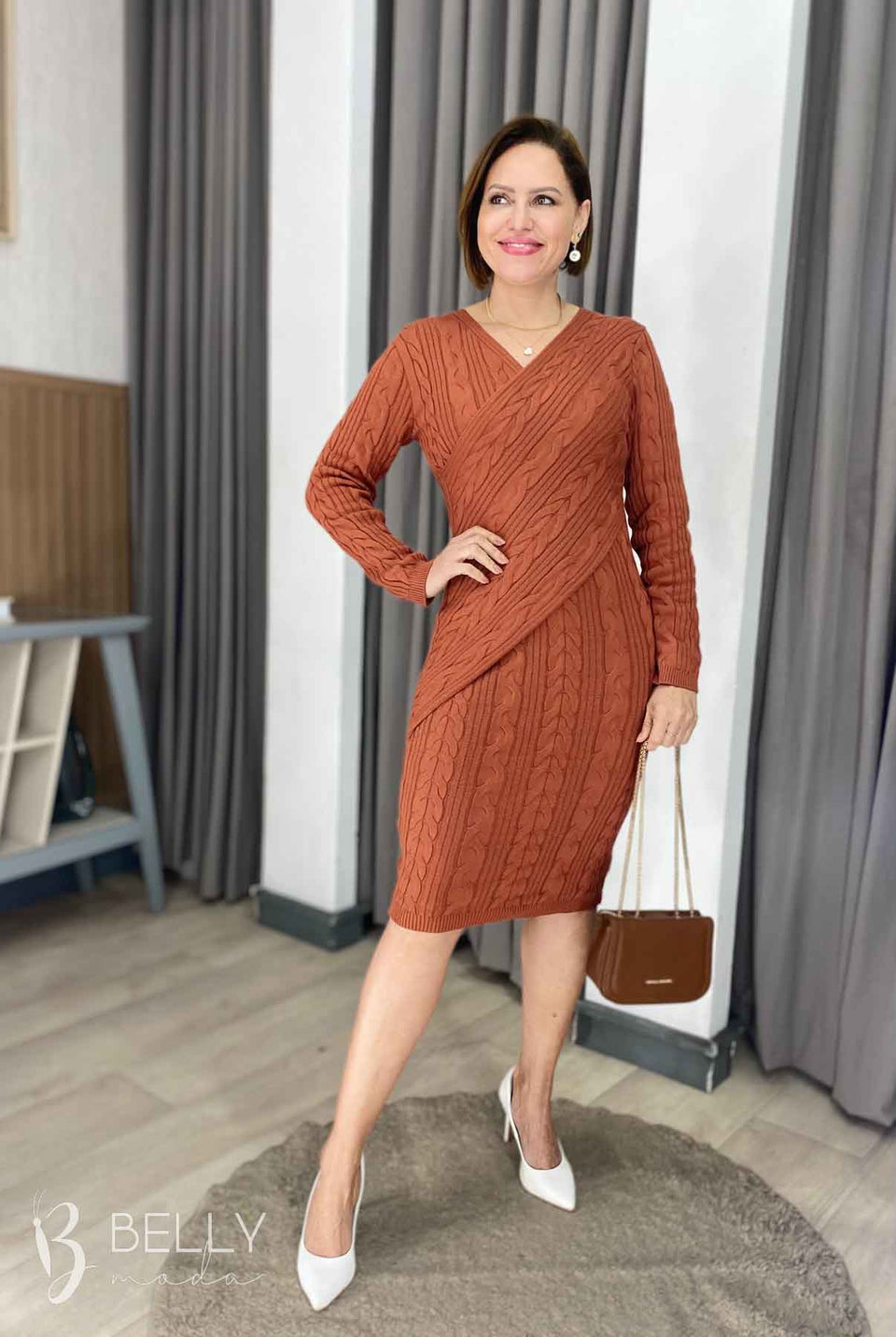 Vestido Jade em tricô modal com transpasse. Com modelagem mais ajustada, este vestido é confeccionado em tricô modal com ponto todo trabalhado nas tramas, proporcionando um toque em alto relevo. Possui transpasse frontal na diagonal, criando o efeito decote em "V", mangas longas e comprimento na altura do joelho. Uma peça versátil e elegante para te manter aquecida nesta estação.