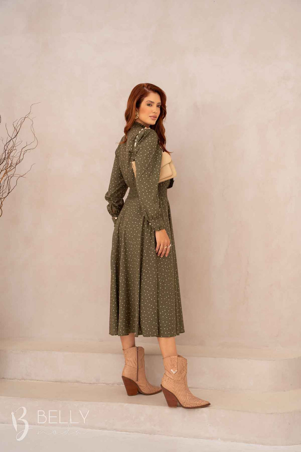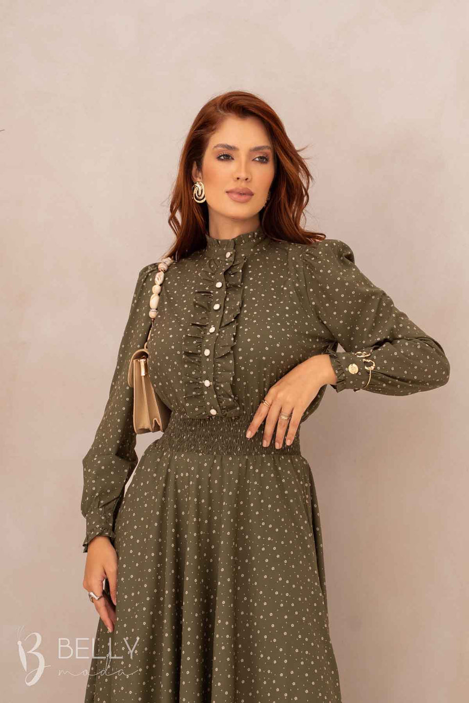 Vestido Lidi é produzido em crepe Gloss, um tecido que não amassa e possui toque de seda. Com manga longa, punho com leve babado e modelagem godê, o vestido é romântico e prático. Possui bolsos faca, comprimento midi, gola mais alta e fechamento em botões frontais funcionais. A estampa delicada liberty traz leveza ao look.
