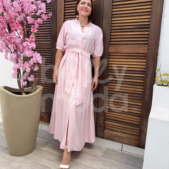 O Vestido Andreza da Belly Moda é a escolha perfeita para quem busca elegância e conforto. Confeccionado em crepe douse, possui manga 3/4 e comprimento longo, com pregas na saia que proporcionam fluidez ao caminhar. Acompanha faixa para marcar a cintura e conta com botões decorativos, trazendo charme e sofisticação ao look.
