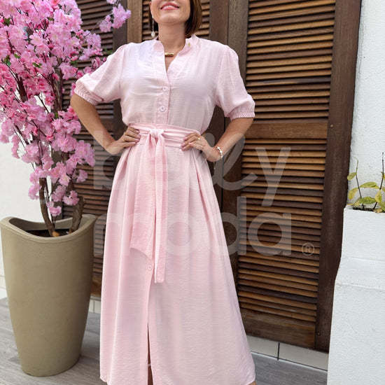 Vestido Longo Andreza em Crepe Douse com Botões Casual Elegante