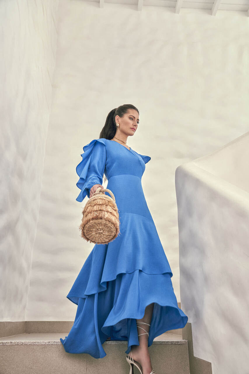 Combine o vestido longo com uma sandália de salto alto para um look sofisticado, ou com uma rasteirinha para um visual mais casual e confortável.