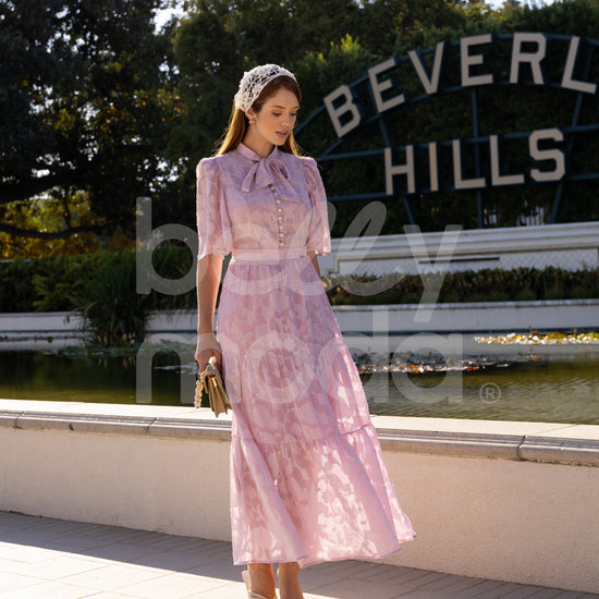 O Vestido Marcia Longo é confeccionado em tule leve e delicado, com forro que garante conforto e segurança. O modelo possui laço de amarração na gola, fechamento frontal em botões e mangas amplas que proporcionam charme e sofisticação. Com marcação na cintura e marias ao longo da saia, o vestido apresenta caimento fluido e elegante, ideal para um visual feminino e atemporal.