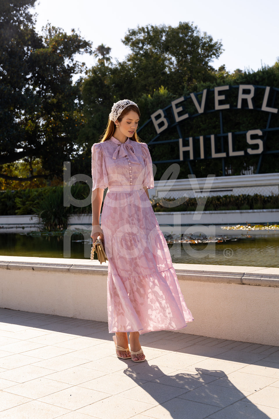 Combine o Vestido Marcia Longo com sandálias de salto e acessórios delicados para ocasiões especiais, ou com rasteirinhas para um look elegante no dia a dia.