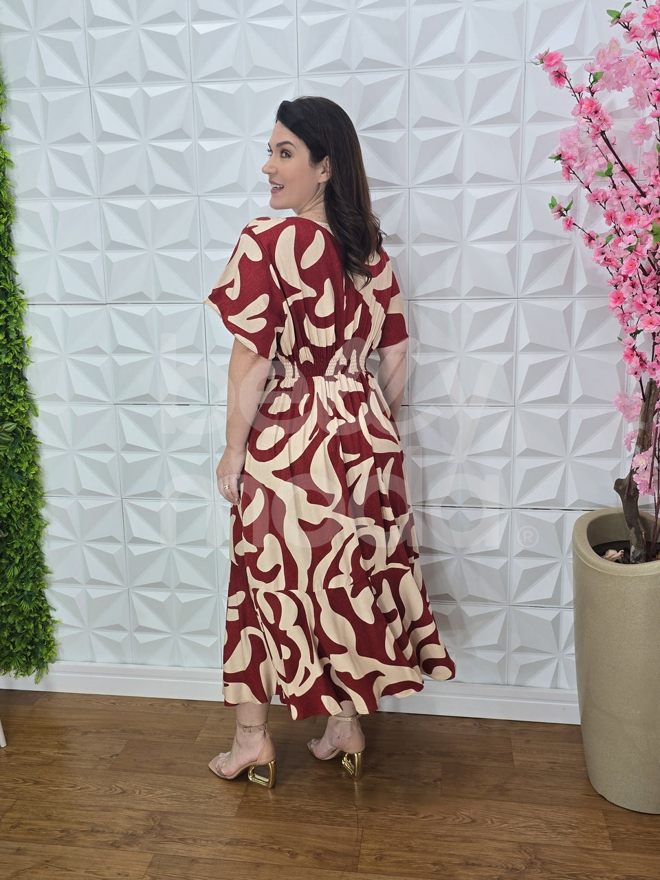 O Vestido Suzana Max Midi é confeccionado em viscolinho, tecido leve, respirável e com toque natural, ideal para os dias mais quentes. Possui decote em V que valoriza o colo, mangas amplas que trazem fluidez e conforto, além de lastex na parte de trás para melhor ajuste ao corpo. O recorte na cintura realça a silhueta e confere um caimento impecável, unindo elegância e leveza em uma única peça.