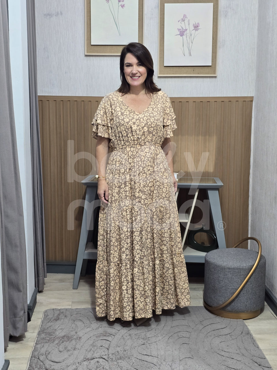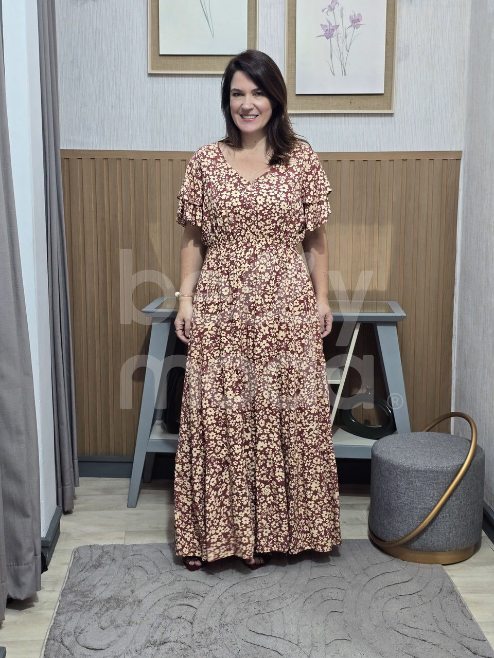 O Vestido Max Midi Valentina da Belly Moda traz um caimento fluido e elegante. Com decote em V, manga dupla e recorte com lastex na cintura, a peça valoriza a silhueta com conforto. A saia em marias garante movimento e um visual feminino para diversas ocasiões.