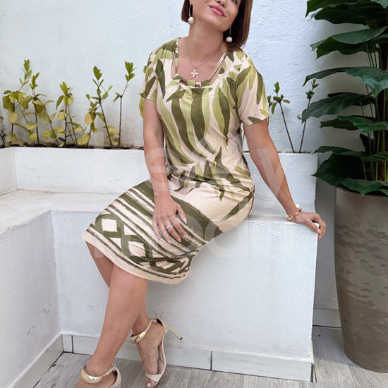 Vestido Midi Alessandra Estampado em Malha Venetia Casual Elegante