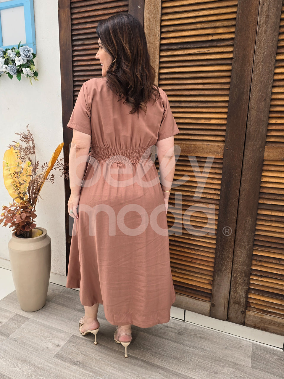Vestido Midi Amanda Liso em Tecido Marrante Casual e Elegante