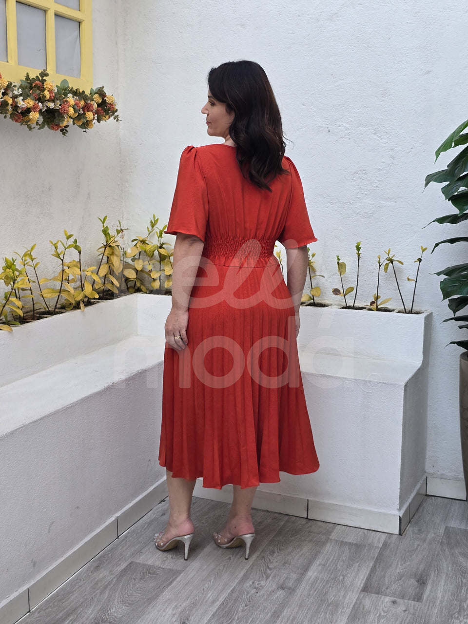 Vestido Midi Daniela Liso em Crepe com Toque de Seda Elegante