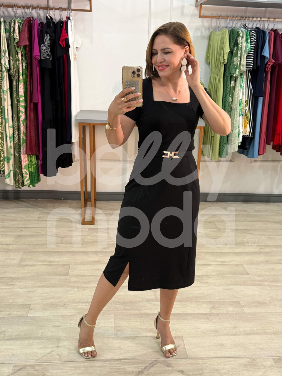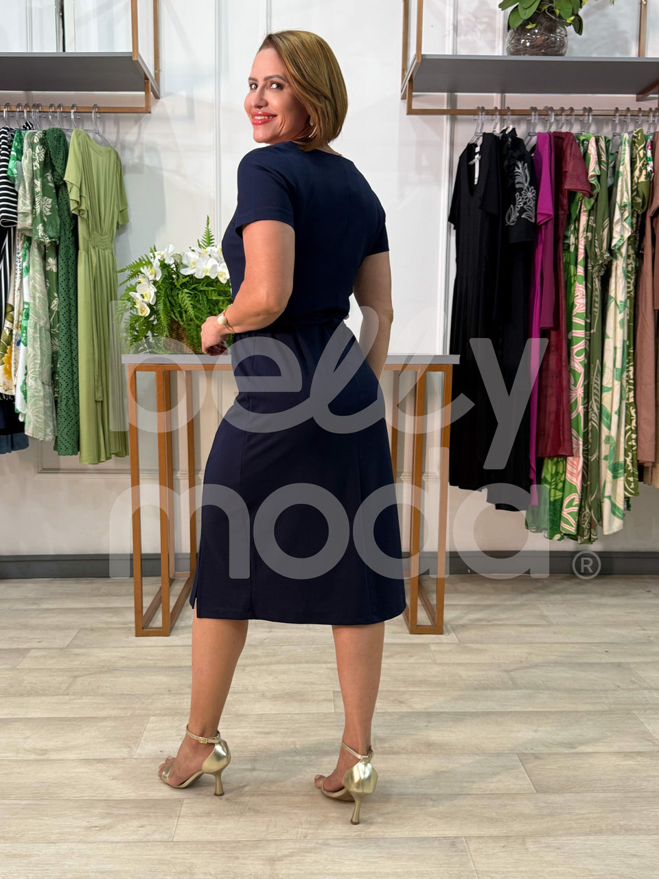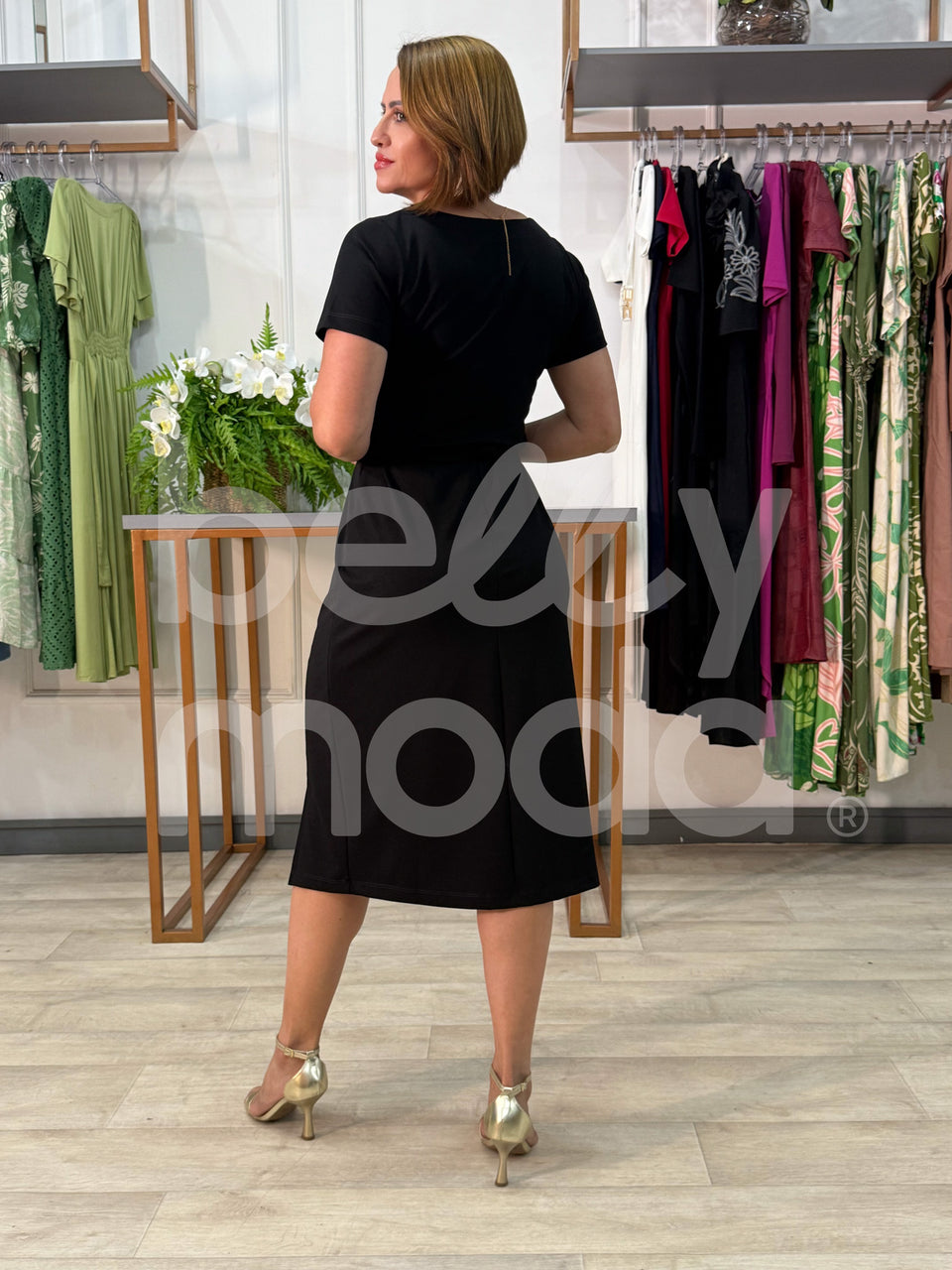 Vestido Midi Mirna Liso em Malha Alfaiataria Casual Elegante