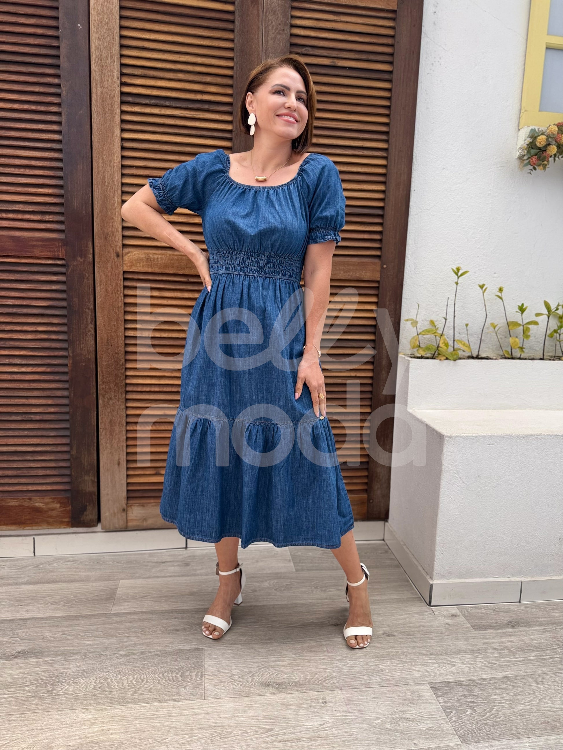 Vestido Mini Fernanda Jeans Ombro Ciganinha Casual Estiloso